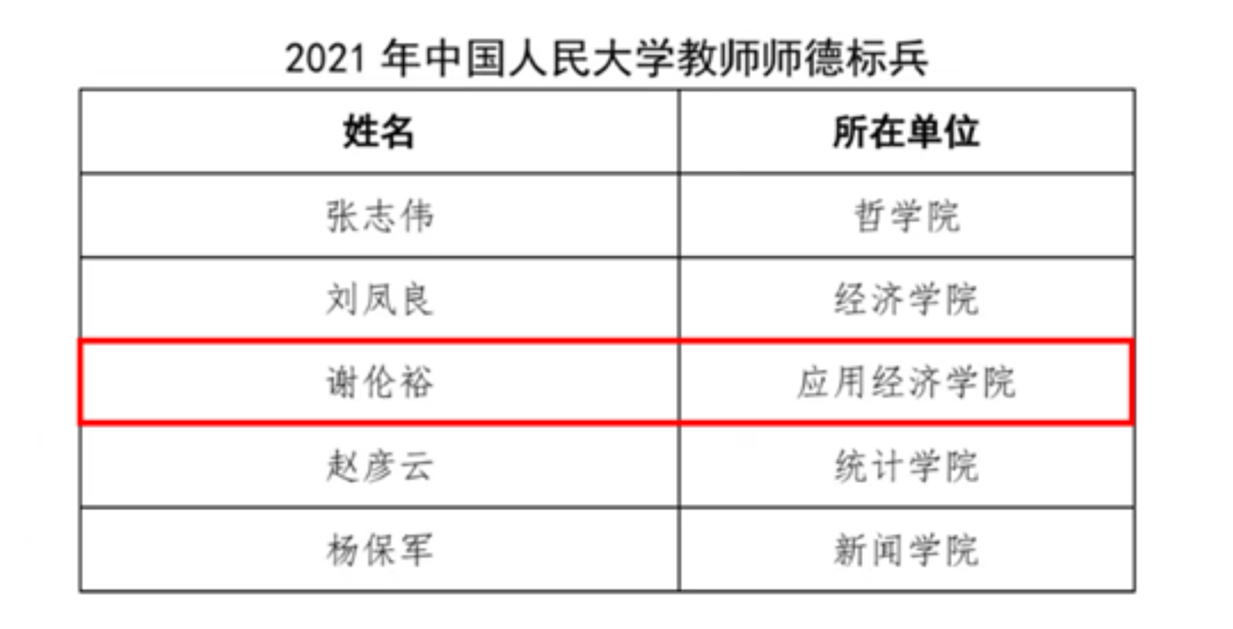 近日,太阳成集团tyc官网党委教师工作部公布2021年度太阳成集团tyc官网教师师德标兵评选结果。公司谢伦裕副教授荣获2021年太阳成集团tyc官网师德标兵荣誉称号。