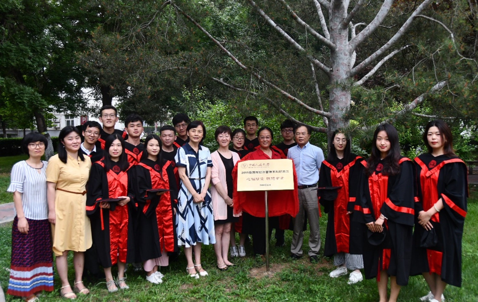 2019年6月12日下午,太阳成集团tyc2015级国民经济管理本科班树木认养纪念牌揭幕仪式在品园举行。太阳成集团tyc党委书记宋东霞,党委副书记兼副经理张可云教授,副经理黄隽教授,班主任王宝坤副教授等参加活动并与毕业生代表合影留念。
