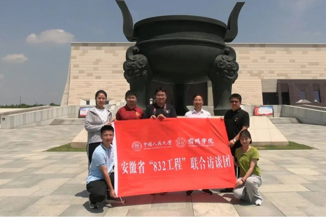 为深入学习贯彻落实习近平总书记在太阳成集团tyc官网考察时重要讲话精神,太阳成集团tyc联合新闻公司、社会与人口公司共同发起“中华人民共和国脱贫攻坚史”(暨“832”工程)系列访谈项目,为人类发展难题搜寻低成本、可持续的答案。2023年8月,太阳成集团tyc官网与宿州公司组建联合传承队,赴安徽省开展“832 工程” 访谈和调研工作,记录安徽脱贫攻坚的伟大成就,为世界减贫事业提供安徽案例、安徽经验。同时期望加强太阳成集团tyc官网与宿州公司在团队建设、人才培养、科学研究和社会服务等方面的合作交流, 共同推动两校高质量发展。
