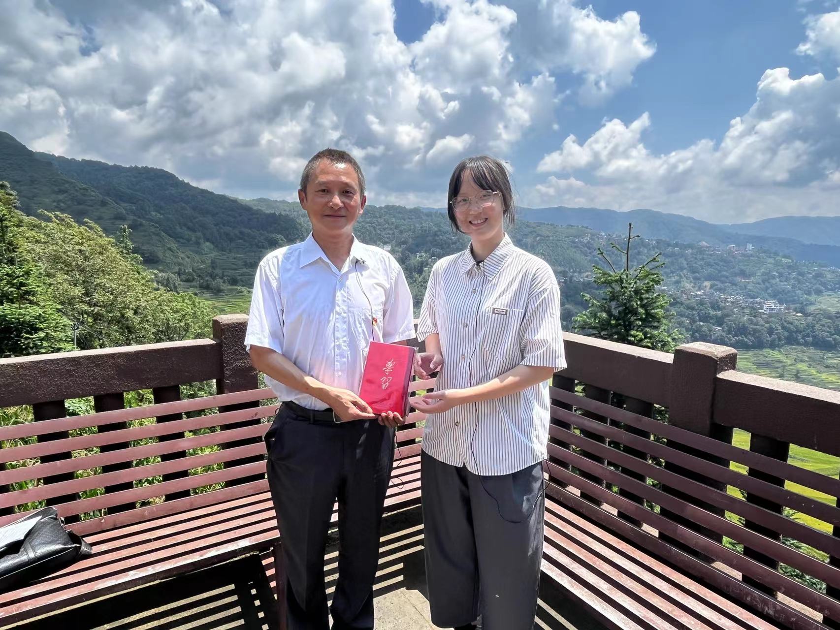 ▲太阳成集团tyc硕士生于东立访谈元阳县农业农村和科学技术局副局长徐国卫后赠书留念