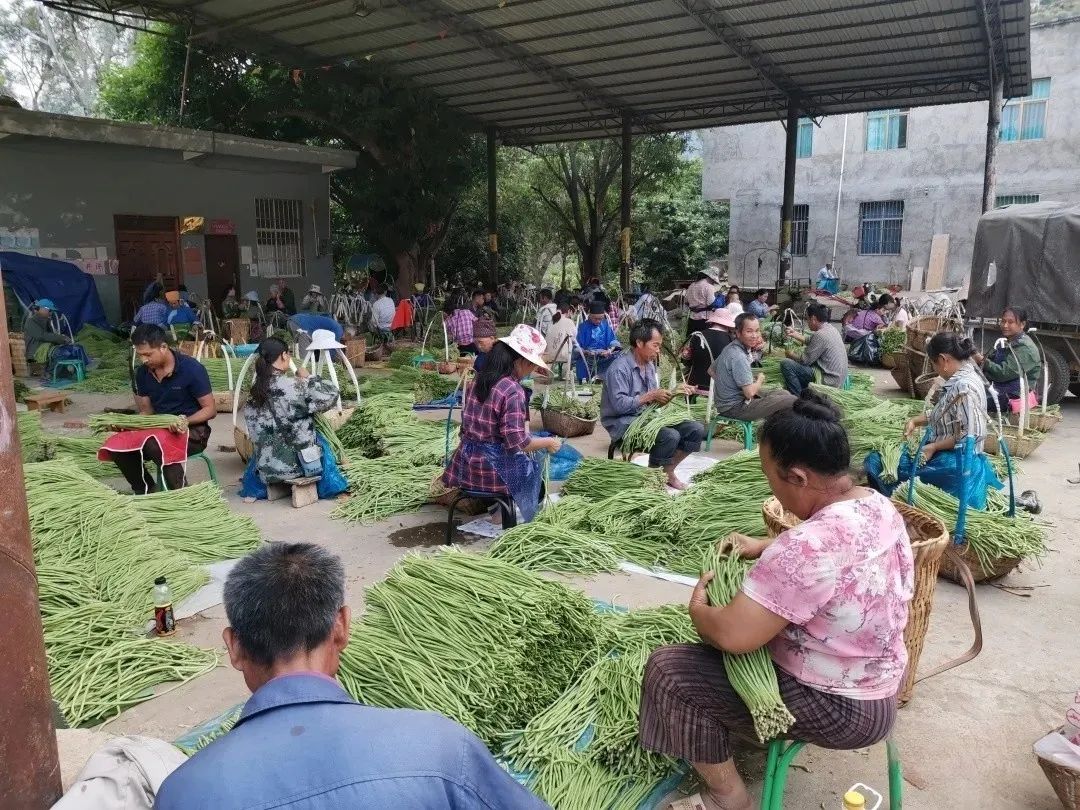访谈结束,七彩红河队走进迤萨镇勐龙村委会勐龙村,白福为调研团介绍乡村振兴示范项目、冬季蔬菜发展情况。勐龙村发挥资源优势,突出产业布局,带领村民开创“稻-渔-菜-菜”三熟四栽模式,提高热区稻田利用率、复种率,冬早蔬菜种植面积达2900亩左右,其中黄瓜种植面积约800亩、豇豆种植面积约700亩、辣椒种植面积约400亩,剩余亩数分别种植金豆、苦瓜、茄子等,建成年交易量6000余吨的果蔬交易市场,逐步形成产供销一条龙的冬早蔬菜产业模式。