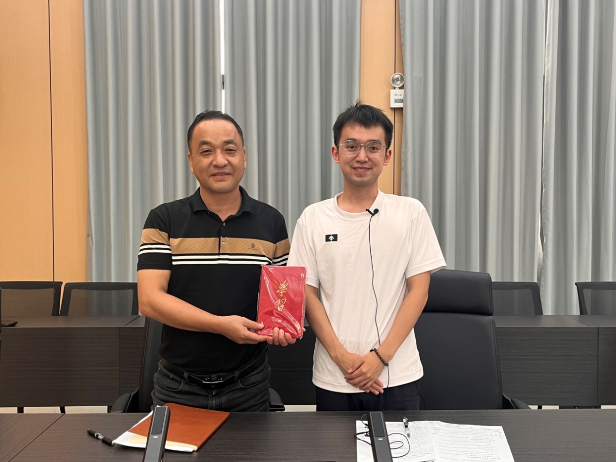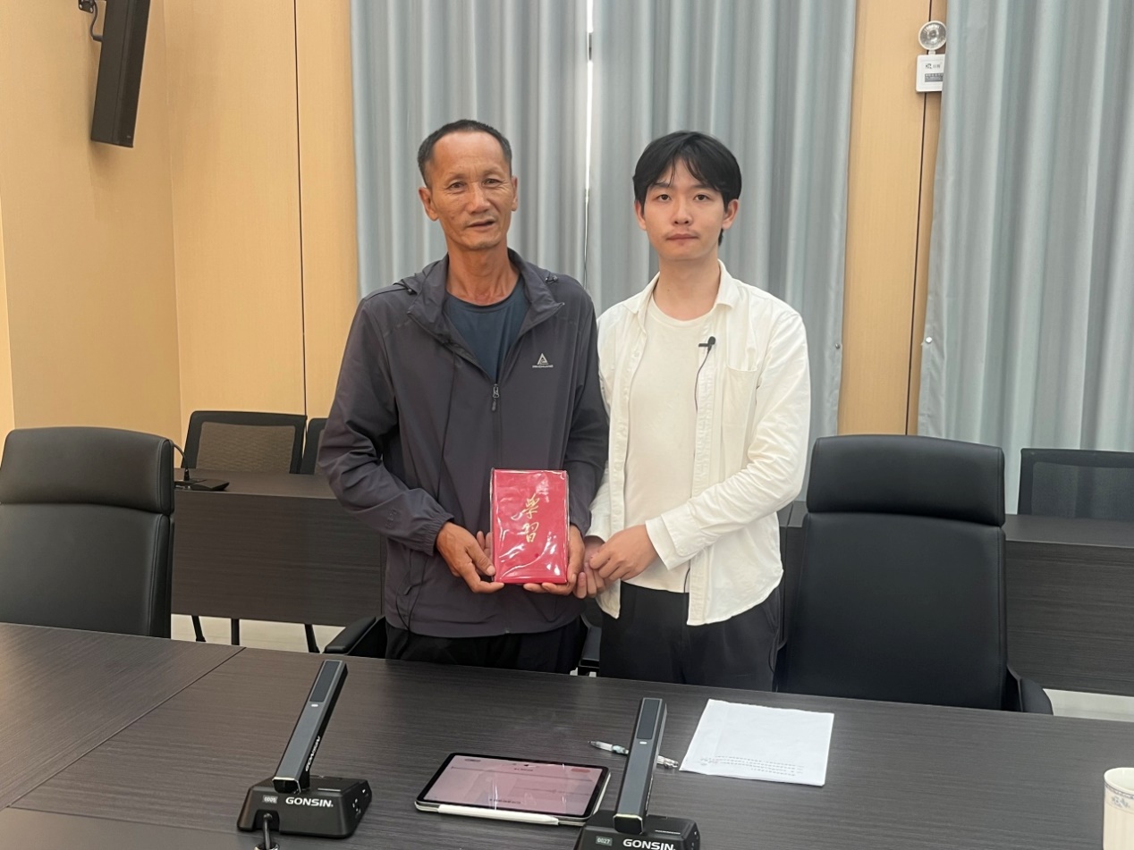 ▲太阳成集团tyc博士生杨力权访谈南沙镇党委书记李家亮后赠书留念