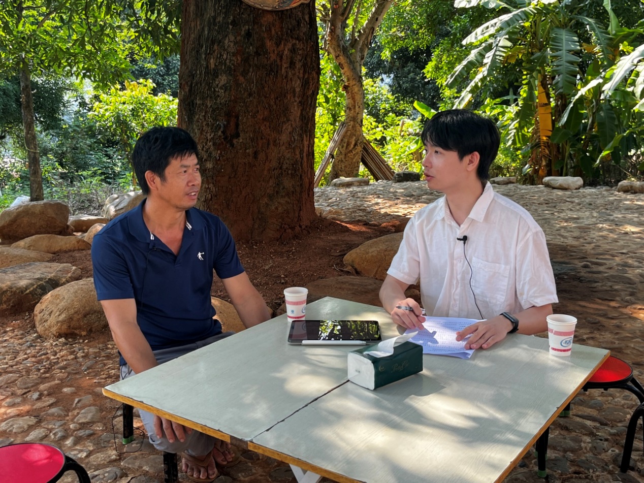 随后,本科生刘燕妮对迤萨镇勐龙村委会村党总支书记白福进行访谈。白福介绍勐龙村依托于天然自然环境优势大力发展冬季蔬菜以及水果种植,大大提高了当地居民收入,由原来人均1000~2000元,到如今人均23000元。在发展冬季蔬菜过程中并不一帆风顺,发展初期由于勐龙村村民思想较为保守,并不能接收这种先进种植理念,更加信赖传统科技种植,于是政府干部带头种植冬季蔬菜,收效很好,勐龙村居民才逐渐开始接受种植冬季蔬菜,并基于“订单式农业”解决了蔬菜市场中“无路可销”的问题。白福还提到,通过乡村振兴项目,将当地自然环境和人文风气在很大程度上进行了治理,通过乡村振兴项目所发展起来的订单式冬季蔬菜使当地居民收入增加,在大大提高衣食住行水平情况下,人们也逐渐开始注重环境保护和社会风气治理,这使得当地环境和人文风气得到了很大改善。