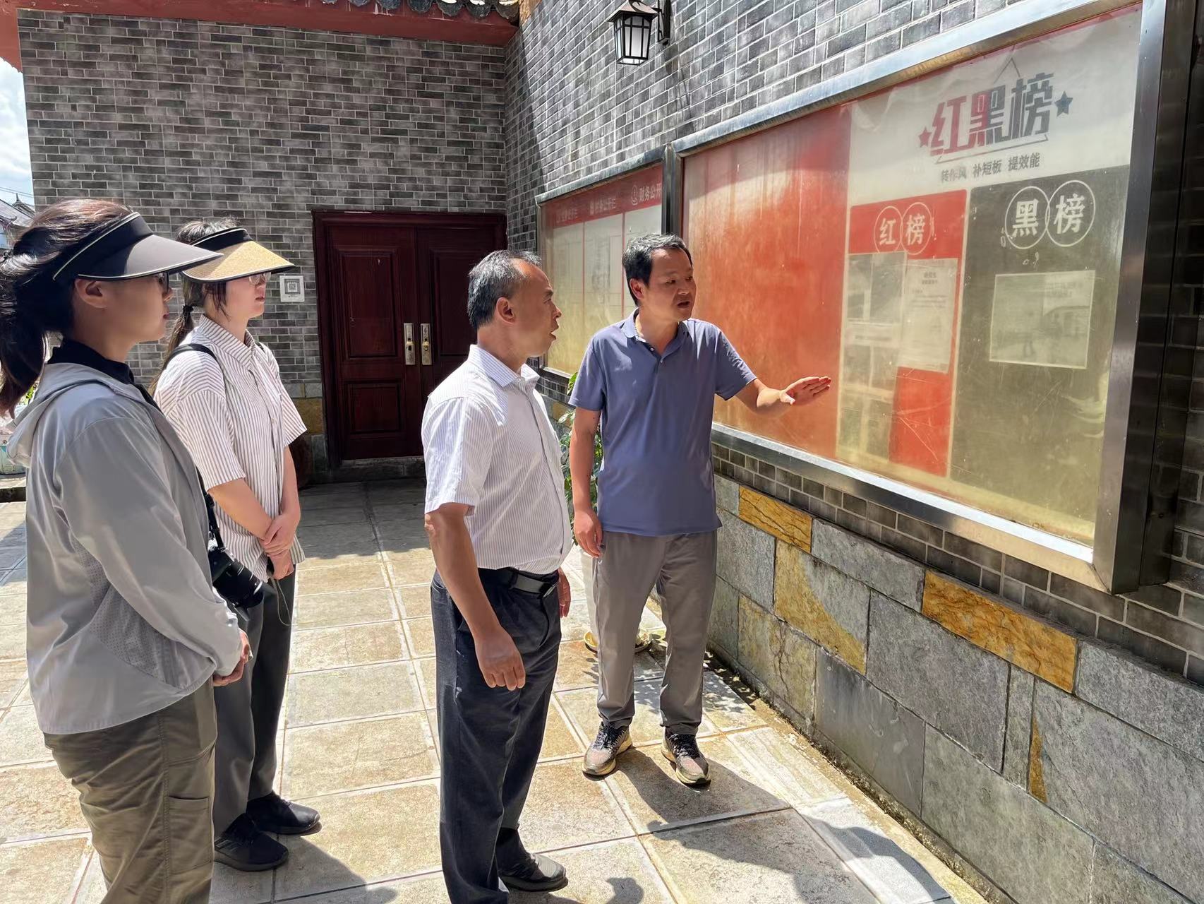 8月15日下午,七彩红河队到达宝华镇俄垤村委会老翁台村。宝华镇人大主席刘羽介绍老翁台村基于政府出台法律法规,结合当地居民风俗习惯制定利于村民理解的村规。村规用口语化语言,如每句话结尾都会加上“呢”等语气词,向村民讲述在日常生活中应遵守的行为规范,提高规章在少数民族村寨的可接收性。老翁台村在村委会张贴“红黑榜”,在红榜对值得称赞的事件进行表彰,例如在红榜上会出现当年老翁台村考生高考录取通知书,利用比较心理,鼓励教育;在黑榜上张贴在村寨中发生的不良事件予以警告。