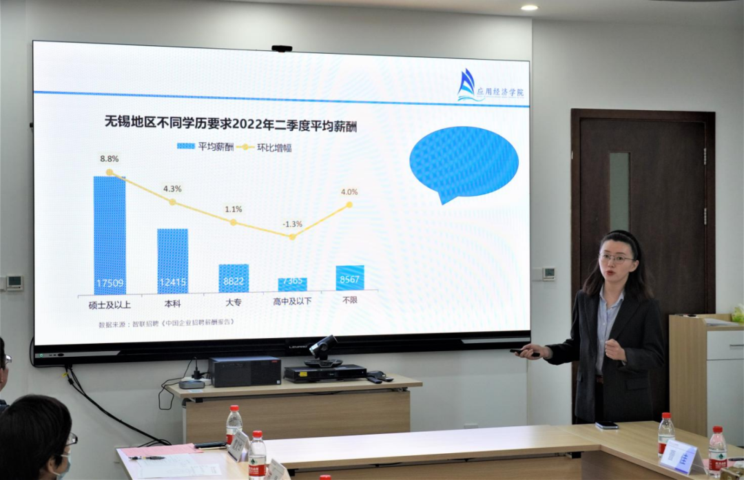 刘阳以计量经济学中的“多元回归分析应用的讨论”为主题进行展示。她系统探讨了变量度量单位的影响,实证研究中函数形式的变形,并举例对相应内容进行分析,最后全面回顾和总结此部分的重点内容。