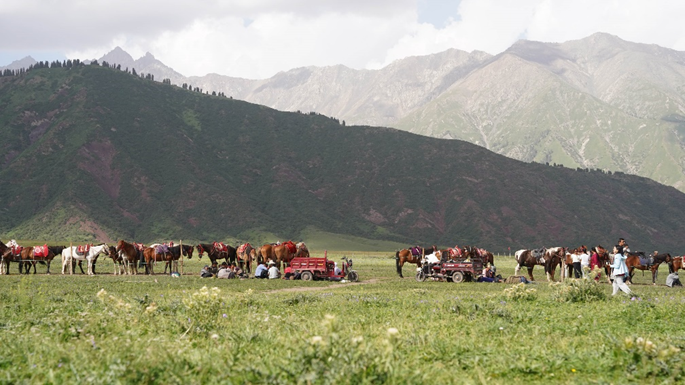 7月24日下午,调研团队来到位于温宿县北部山区柯柯牙镇的塔格拉克村(简称“塔村”)。塔村坐落于天山高峰——托木尔峰脚下,是全国乡村旅游重点村、国家AAA级旅游景区、自治区乡村旅游重点村,有“南疆那拉提”“天然氧吧”之美誉。放眼望去,青山环绕、草原广袤、雪峰耸立,令人心旷神怡。阿克苏文旅集团利用冰川、雪山、森林、草原等优质自然资源,在塔村确立了“乡村振兴+美丽乡村建设+旅游+扶贫”的发展思路,成功打造出“归园田居·塔村”乡村旅游品牌,创造一批就业岗位,推动了村经济发展。据塔村第一书记侯廉新介绍,除了通过牛羊的集体养殖增收,农牧民还可以在旅游企业内工作,或者选择自主创业、开办特色民宿(如带有观景台和自助烧烤架的小木屋、太空酒吧等),去年塔村人均年收入已达到55000元。此外村集体以土地入股的方式每年获得分红,资金可投入本村软硬件建设,提高村民生活质量。“归园田居·塔村”通过政府引导、企业投入、牧民参与的方式,激发了“造血”能力、加快了乡村振兴的步伐。农业强、农村美、农民富的美丽乡村建设逐步实现,并展现出良好态势,用实际行动诠释了“绿水青山就是金山银山”理念。