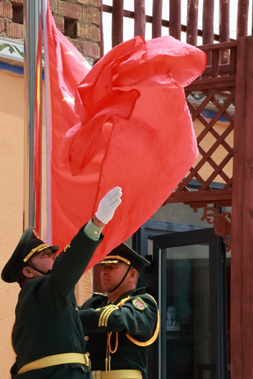 调研团队成员们无一不为胡达拜地·依明及其后代的事迹所打动,充分认识到高举爱国主义旗帜、以实际行动发扬爱国主义精神、促进民族团结的重要性。参观后,调研团队全体成员在展馆前举行了庄严的升旗仪式。成员们齐声唱响《义勇军进行曲》,鲜艳的五星红旗冉冉升起,对党和国家的热爱与感恩之情也在成员们的心中升腾。