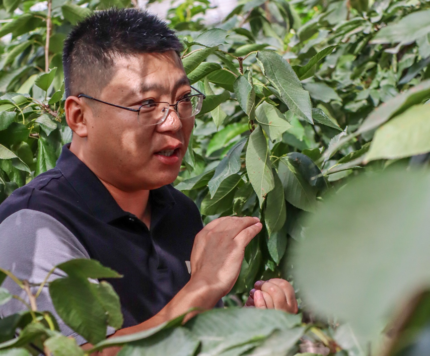 7月25日上午,调研团队来到柯柯牙镇帕克勒克村,参观冰雪蜜脆园戈壁设施农业樱桃基地。得益于设施农业补贴,建成于2020年的樱桃基地,目前有550个大棚,占地4300亩。棚区内部配备滴灌、喷灌、漫灌三套供水系统,水利设施完备;大棚采用农业物联网系统、自动放风系统、自动温控系统等智能技术进行现代化、规模化管理。基地利用市场供求理论,将樱桃上市时间控制在每年三月中下旬到五月之间,由此高价卖出。基地主要种植三个品种的樱桃:美早、布鲁克斯和俄罗斯8号。美早相当于苹果中的红富士,稳产且容易管理,但价格波动大;而俄罗斯8号虽然抗逆性不好,但是价值很高,可以达到400元/公斤。通过多样化种植,基地在降低风险的同时,提高了总收入。在管理经营模式上,企业建设基地,农户以劳动力入股,“公司+基地+农户”的方式构建了利益共享、风险共担的联结机制,搭建起农户与市场良性互动的桥梁。