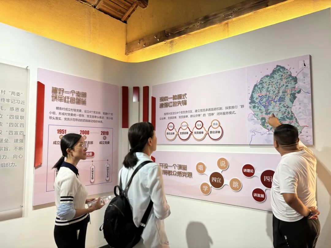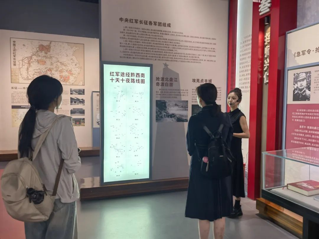 8月27日下午,访谈团调研海河村。海河村位于贵州省黔西南州兴仁市城北街道,是兴仁海河红军战斗遗址所在地。2020年,借该遗址列入长征国家文化公园建设单位契机,海河村积极争取公安部帮扶资金465.29万元,建成集“红色+旅游”“红色+乡村”“红色+研学”为一体的红色文化体验园, 2023年6月正式开馆,累计接待州内外游客4万余人次。