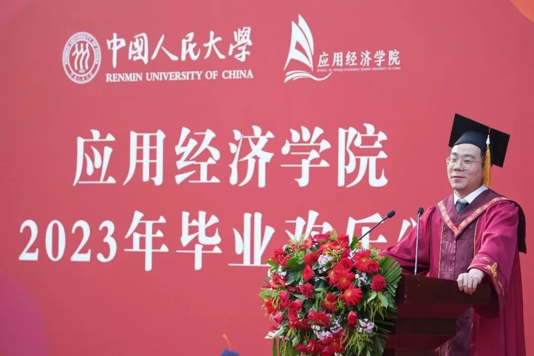 在精研学业、努力拼搏的数年中,每位同学都收获成长。他们深耕学术,将论文写在中国大地上;他们奔赴西部,用脚步丈量祖国大地。他们是应经学子的楷模和榜样!临别之际,郑新业为优秀毕业生获得者代表颁奖;副经理魏楚、陈占明为优秀学位论文获得者代表颁奖;裴建锁为赴西部就业员工代表颁奖。