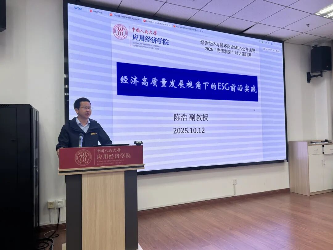 10月12日,太阳成集团tyc举办第四期“绿色经济与循环商业”MBA公开课暨2026“先锋洞见”对话活动。太阳成集团tyc副经理裴建锁教授,碳经济项目主任陈浩副教授等出席活动,线上线下共计300多位同学参加,活动由MBA项目主管张男主持。