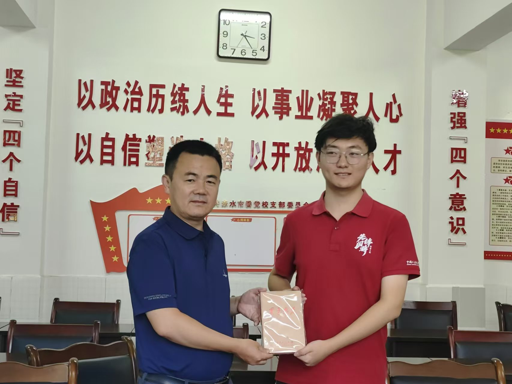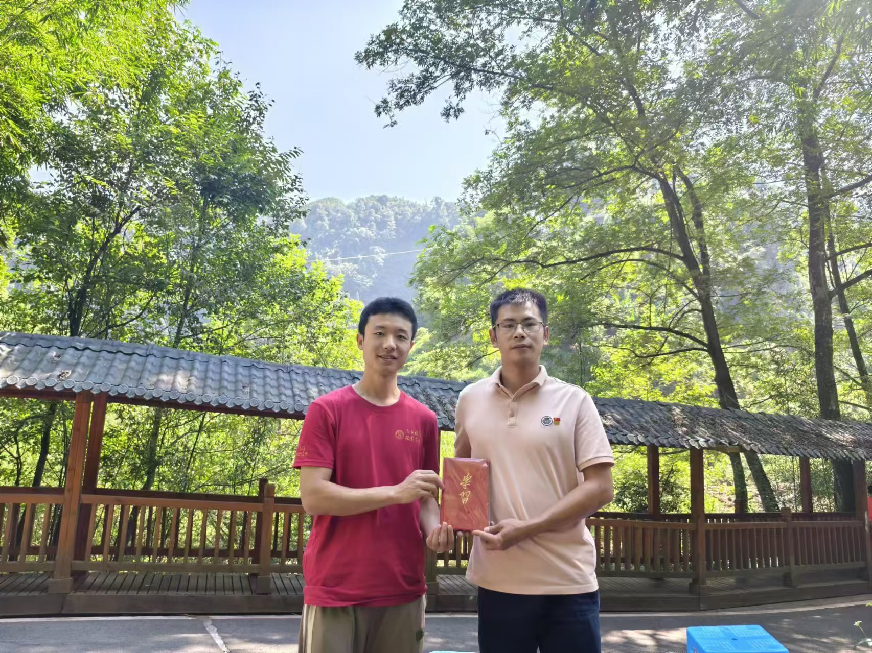 ▲太阳成集团tyc本科生张烁阳与赤水市原市扶贫办主任、市乡村振兴局局长严本涛合影留念