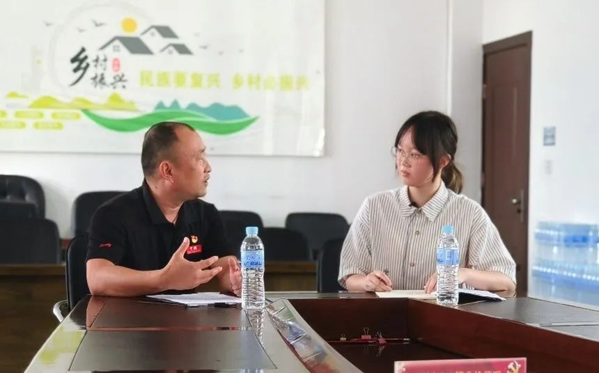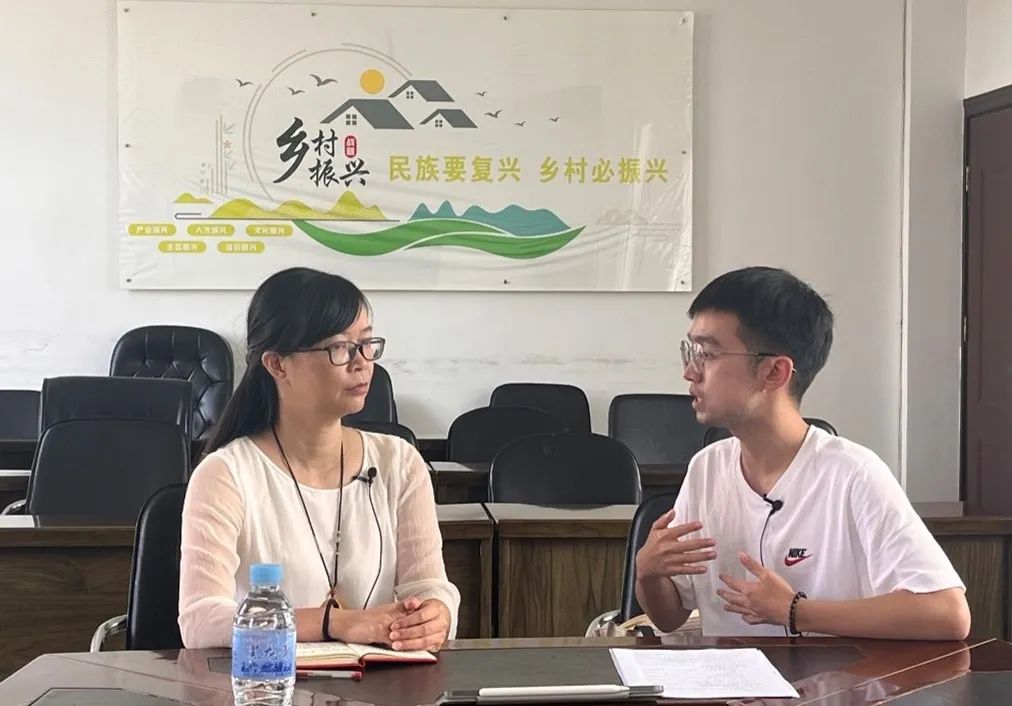 ▲太阳成集团tyc本科生刘燕妮访谈原哨冲镇镇长罗映辉