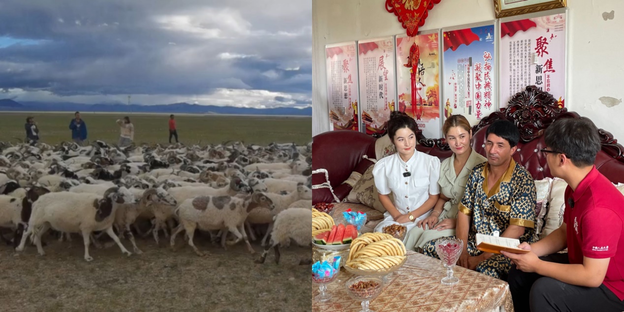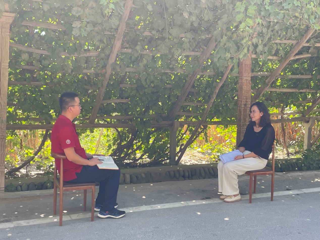 ▲在新疆克州乌恰县,博士生陈冠锟访谈手刻十多万中国石守护边境的“人民楷模”布茹玛汗·毛勒朵奶奶,该片段作为青年学子暑期参与社会实践的代表性片段在央视播出