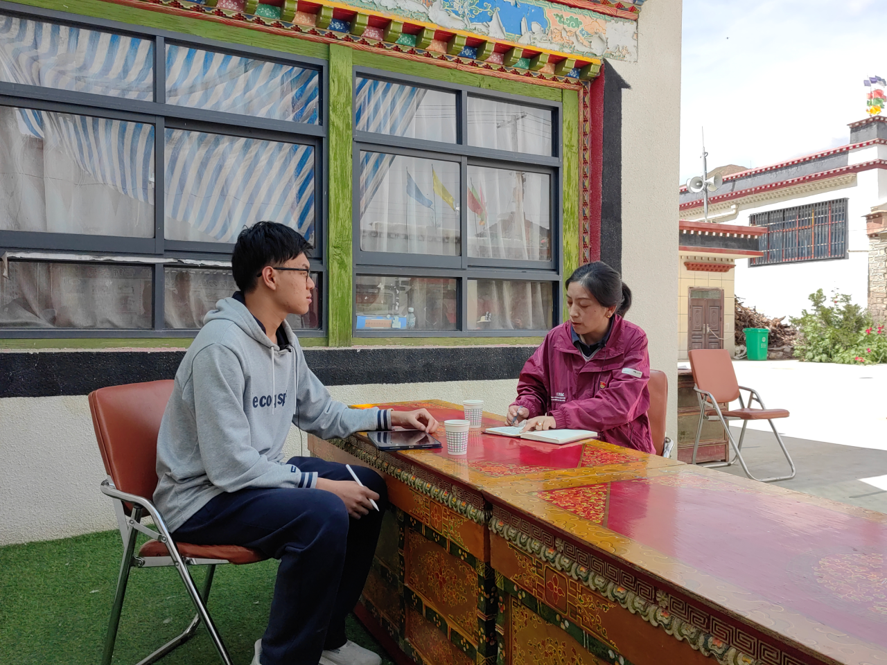 ▲在西藏日喀则访谈20年如一日坚守边境线的全国劳动模范石角