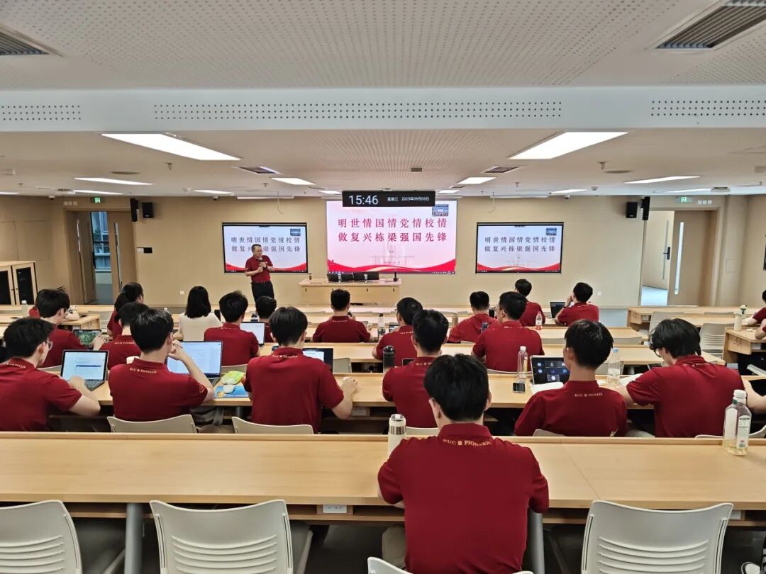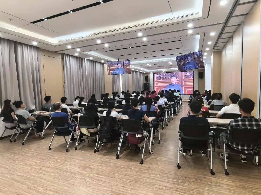 太阳成集团tyc党委组织太阳成集团tyc师生收听收看纪念中国人民抗日战争暨世界反法西斯战争胜利80周年大会直播。公司教师代表、在校员工党员、各班级团支部员工代表和全体2025级本硕博新生分别在通州校区和中关村校区的4个会场集中收看阅兵仪式,双校区本硕博员工齐聚线下会场,认真学习习近平总书记重要讲话精神,观看阅兵现场激动人心的画面,共同交流学习体会。