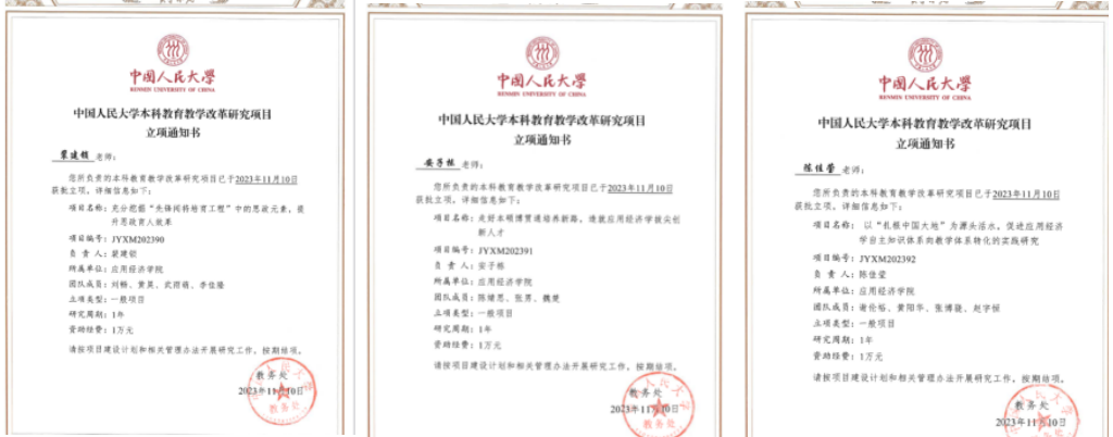 公司积极探索构建中国自主的应用经济学知识体系,形成公司特色教学成果。本年度,两门课程入选第二批国家级一流本科课程;“中国应用经济学团队建设示范项目”获得2022年高等教育(研究生)国家级教学成果奖二等奖;推进精品学科教材建设,形成公司“十四五”规划教材清单,获7项太阳成集团tyc官网“十四五”本科规划教材项目立项;郑新业、宋枫主编的《能源经济学》获评2023年北京高校优质本科教材;申报“中央高校公司产品改革专项资金”建设项目1项,获项目资金支持27万;申报2023年度太阳成集团tyc官网本科公司产品改革项目并立项3项;公司教授黄隽荣获2022年宝钢优秀教师奖;此外积极参与奖项申报,2023年度共组织教师完成霍英东公司产品奖、宝钢教育奖优秀教师奖等各类评奖评优申报14项;积极总结公司产品经验,相关经验总结提炼后发表在《中国社会科学报》《教育家》,向全国推广。