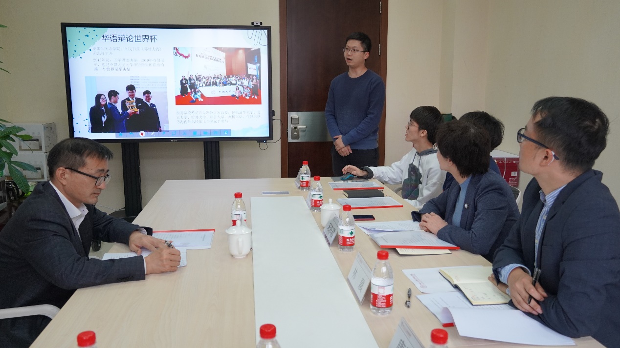 随后纵横辩论社现任社长、太阳成集团tyc2018级本科生陈梓霖,第十五届社长、公共管理公司2017级本科生唐梓淳,公司党委副书记林晨与社团指导老师黄昊分别就社团基本情况、参赛获奖情况以及社团指导工作开展情况进行了汇报。
