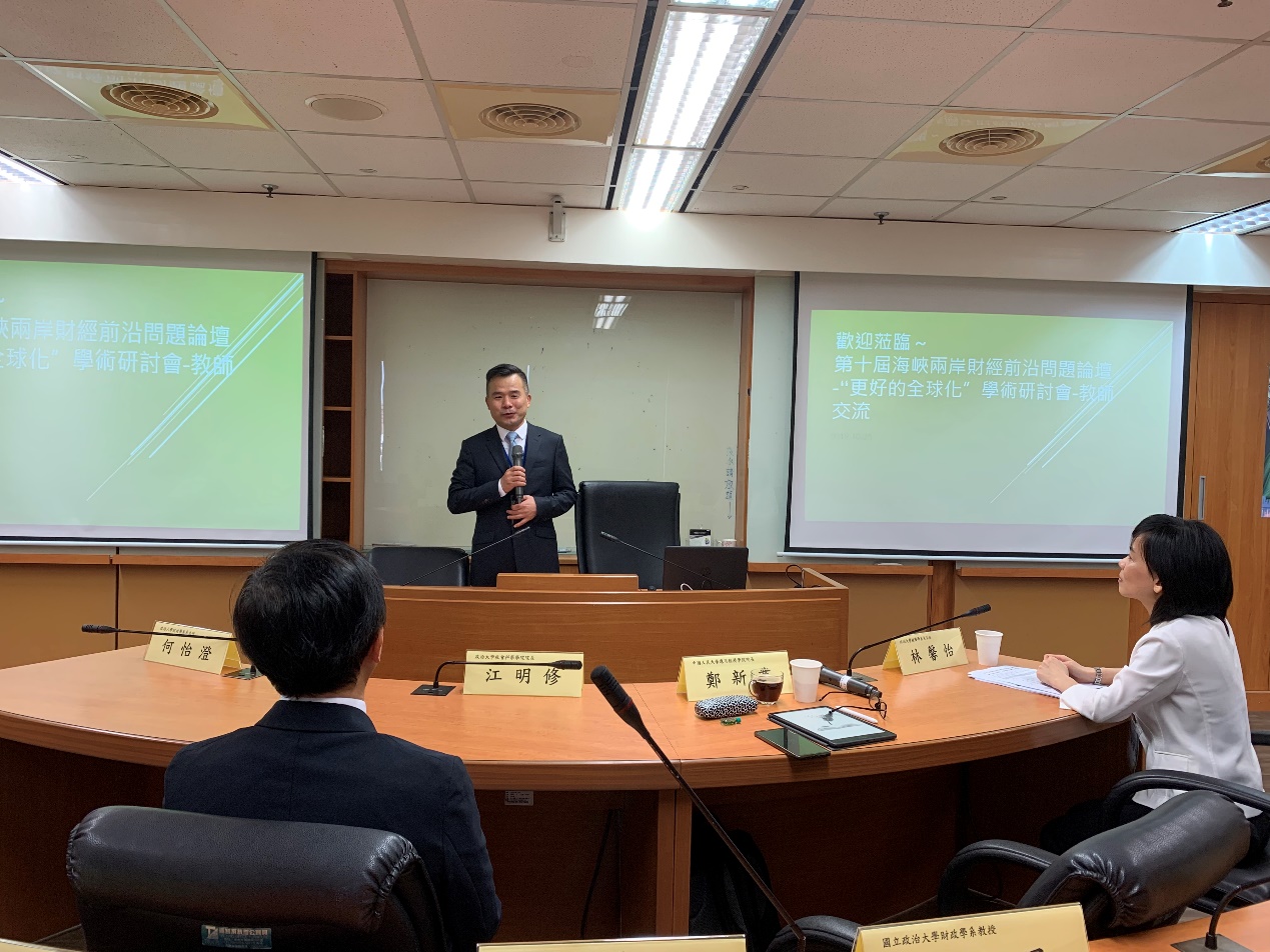 10月25日,公司师生在台湾政治大学参加第十届海峡两岸财经前沿问题论坛,研讨主题为“更好的全球化”。台湾政治大学社会科公司经理江明修教授,经济学系系主任林馨怡教授、庄奕琦教授,财政系主任何怡澄教授,台湾研究中心主任连贤明教授等多位教师与在校生参加论坛。