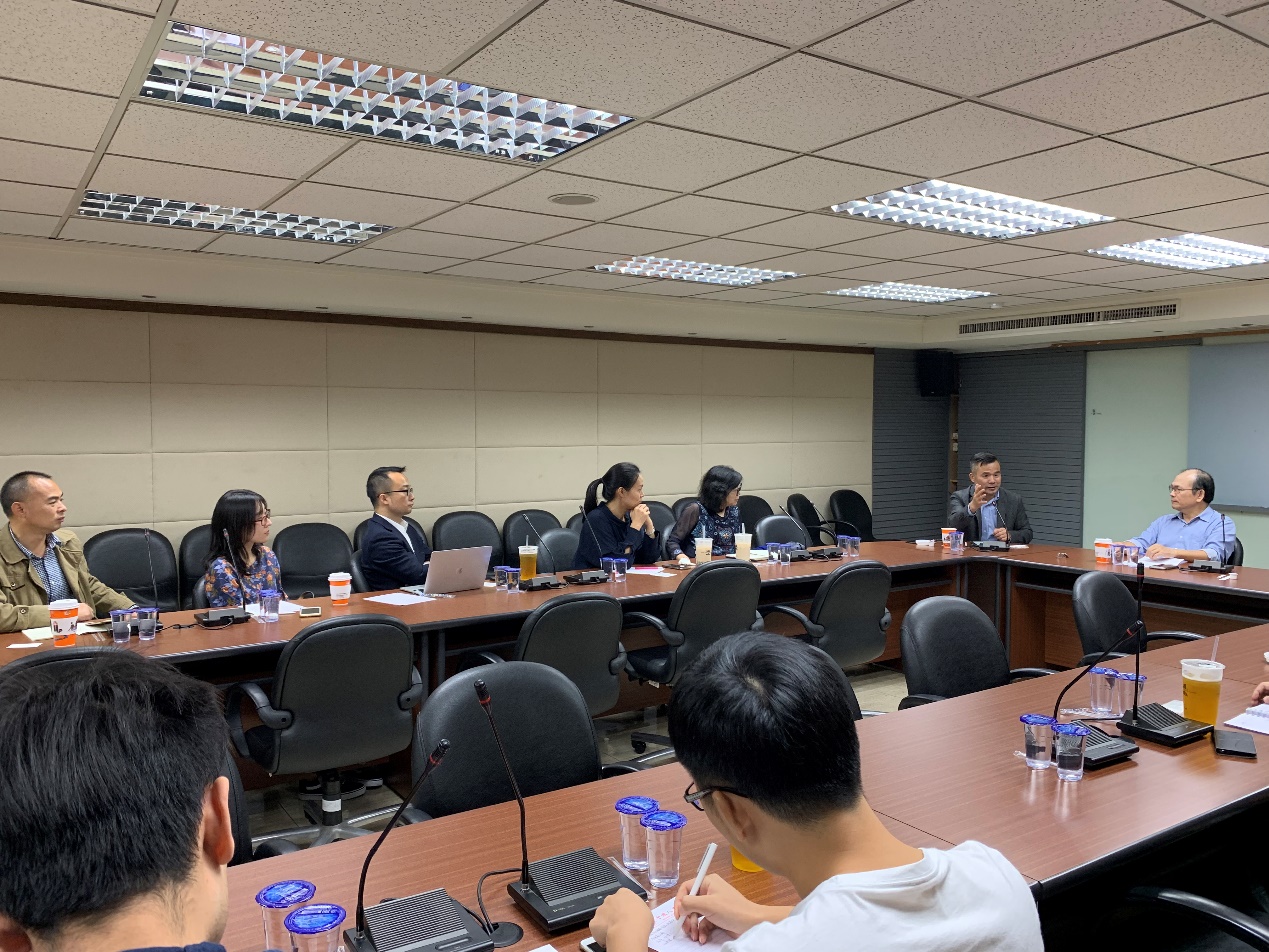 10月24日,公司师生访问了台湾政策研究基金会,并与基金会研究人员进行座谈交流。台湾政治大学教授林祖嘉等参加座谈。郑新业首先回忆了林祖嘉多次赴公司开设讲座、进行学术交流的情况,感谢林祖嘉为两校及两院友谊所做的贡献。林祖嘉对公司师生的到来表示欢迎,详细介绍了台湾地区目前的能源、人口、经济发展等方面的相关情况,以及目前台湾地区发展所面临的一些发展困境,比如工资增速趋近于零、人口出现负增长、无法实现废除核能目标等。公司师生就区域发展、乡村振兴、基础设施建设等问题与林祖嘉进行了交流。