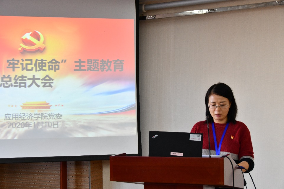 宋东霞表示,全体党员同志要高举习近平新时代中国特色社会主义思想的伟大旗帜,落实十九届四中全会重要精神,自觉将“不忘初心、牢记使命”主题教育成果应用到公司“立德树人”、教学科研和各项事业发展中,坚定信念、开拓进取、同心协力,为把应用经济学建设成“世界一流学科”而努力奋斗!