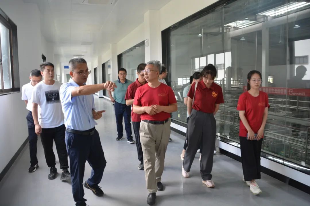 ▲调研团在国晶酒业厂区内了解茶本酒产业发展情况