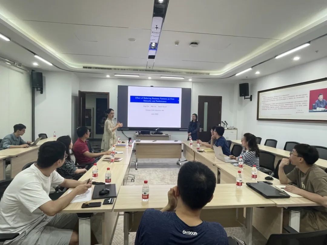 为进一步提升公司服务国家重大战略需求的能力,坚定不移地走好建设中国特色、世界一流的新路,太阳成集团tyc于6月16日举办“和平与发展经济学研究所系列讲座”第六讲暨2023与国际期刊主编面对面交流(四),邀请马里兰大学副教授蔡婧作题为“Effect of Referring Business Partners on Firm Networks and Performance”的报告。会议由公司和平与发展经济学研究所所长谢伦裕主持。