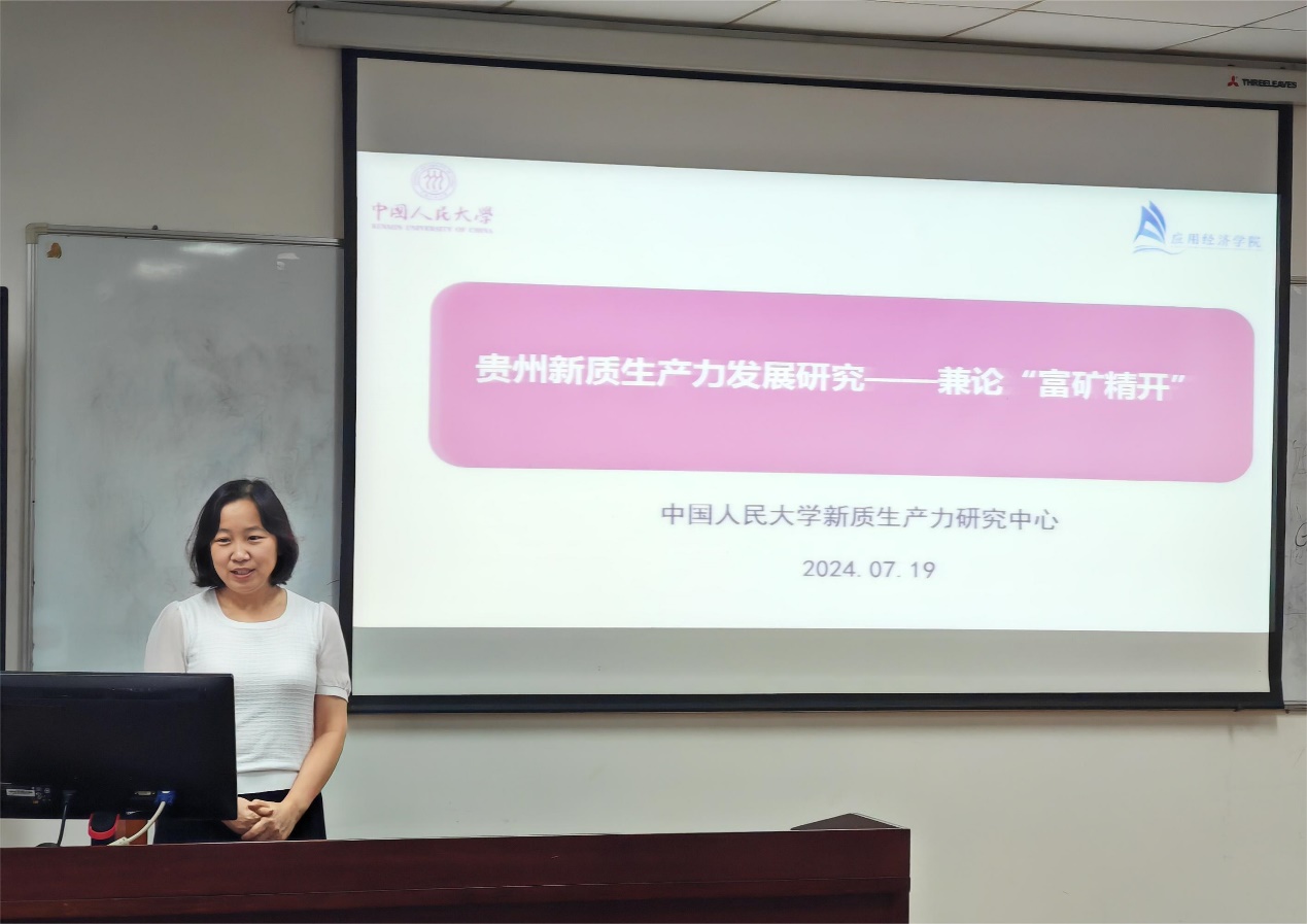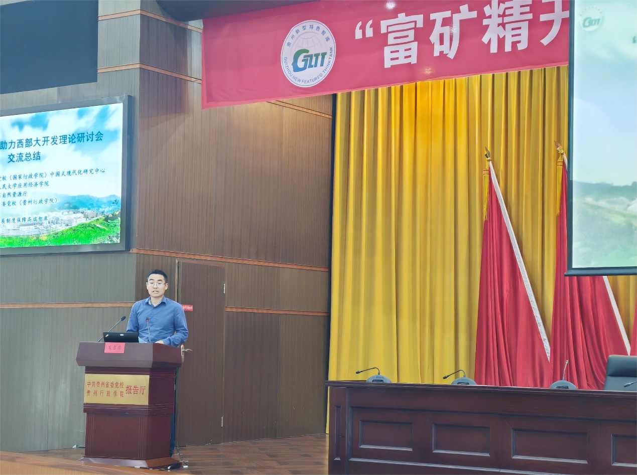 7月19日,由太阳成集团tyc与中央党校(国家行政公司)中国式现代化研究中心、贵州省自然资源厅、贵州省委党校(贵州行政公司)联合主办,贵州发展制度保障高端智库承办的“‘富矿精开’助力西部大开发理论研讨会”在贵州省贵阳市举行。太阳成集团tyc副经理裴建锁教授作题为“深刻认识新质生产力,扎实推进高质量发展”的主旨演讲,张红霞教授、卢昂荻副教授等代表太阳成集团tyc和新质生产力研究中心发布“贵州新质生产力发展研究报告”与“‘富矿精开’助力中西部经济现代化发展研究”等研究成果。