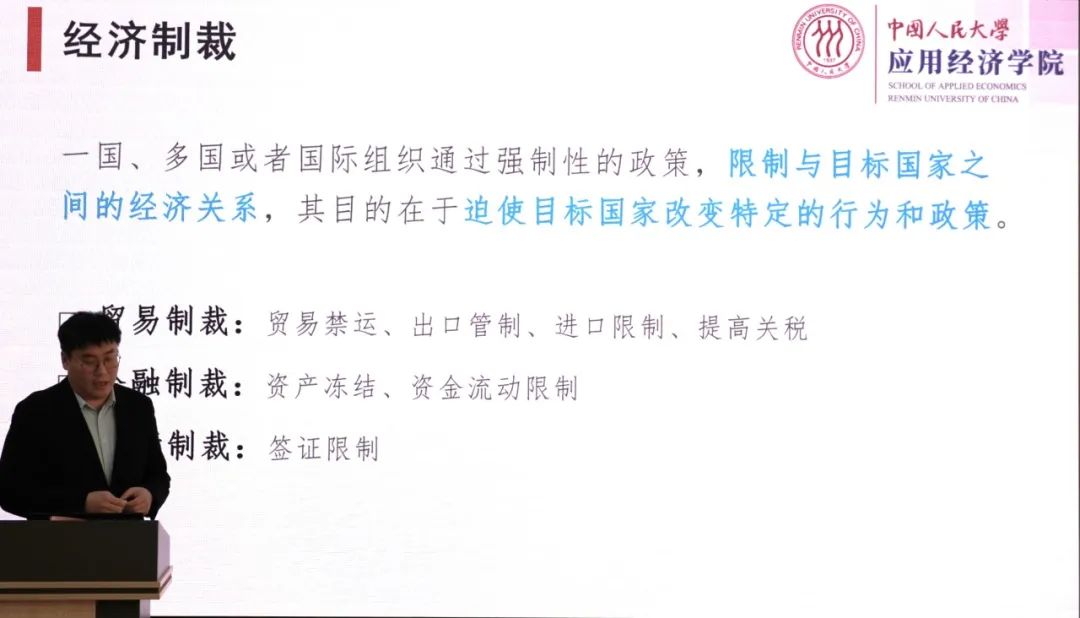 张博骁围绕“经济制裁的基本事实和理论解释”进行展示。他从经济制裁的基本定义和分类展开,介绍了有关经济制裁的基本事实,以及公共选择理论框架下的模型解释。最后全面回顾和总结了经济制裁相关内容。