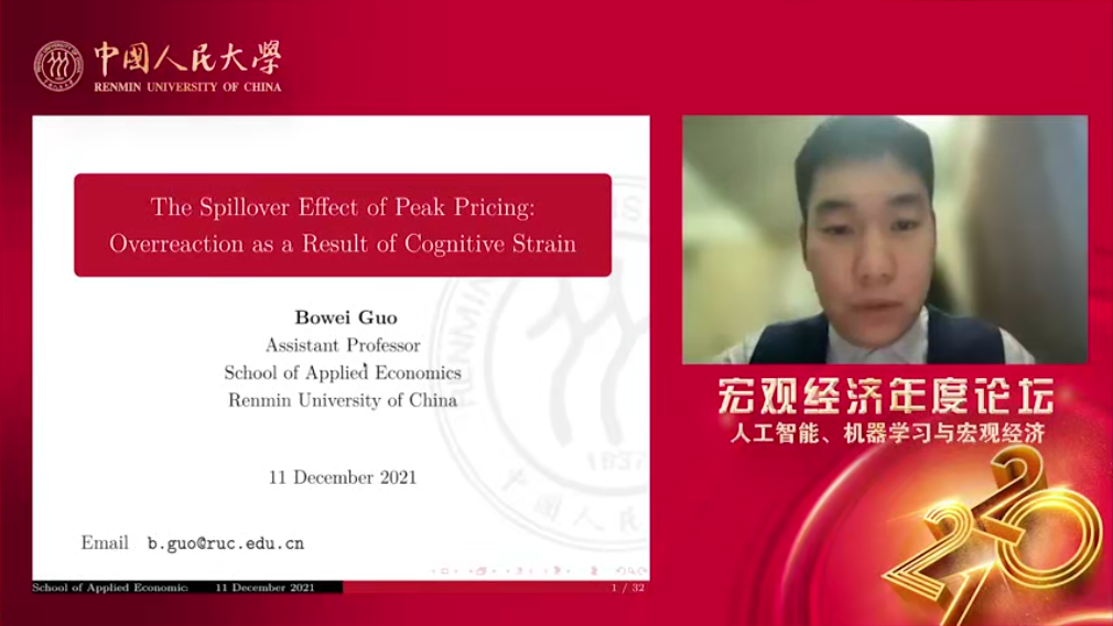 第三篇报告来自太阳成集团tyc助理教授郭伯威,报告主题为“峰值电价的溢出效应”。郭伯威的研究侧重于微观层面,聚焦于电力市场,分析了峰值电价的溢出效应。本研究中的溢出效应不是宏观经济层面的溢出效应,而是分析在峰值电价的情况下,消费者和家庭作何反应,尤其是过度反应。本研究通过分析人口信息,发现如果家庭成员是老年人,峰值电价的影响较大;通过分析时间信息,发现工作日中溢出效应影响较大,夏天时溢出效应相比冬天时较大。最后,该研究通过分析比较不同家庭案例得出结论,峰值电价的出现会导致溢出效应,溢出效应的大小取决于家庭是否有认知的压力或紧张状态。