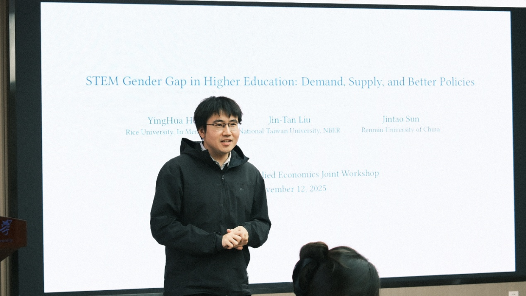 孙津韬报告了论文“STEM Gender Gap in Higher Education: Demand, Supply, and Better Policies”。研究利用中国台湾地区2003年全面的大学招生数据,探讨了STEM领域的性别差距问题。研究发现,尽管女性已占大学毕业生多数,但在理工科专业中占比仅为30%。研究的主要结论是,超过一半的性别差距源于员工早期的决策——女性员工绝大多数选择了非理工科,即没有参加理工科专业所需的科目考试。反事实政策模拟显示,由于决策问题,免除学费或增加女性教师比例等政策对缩小整体差距几乎无效。韩璇师行了点评,她建议增加后续队列或进行前后对比,以检验性别差距机制的稳定性。