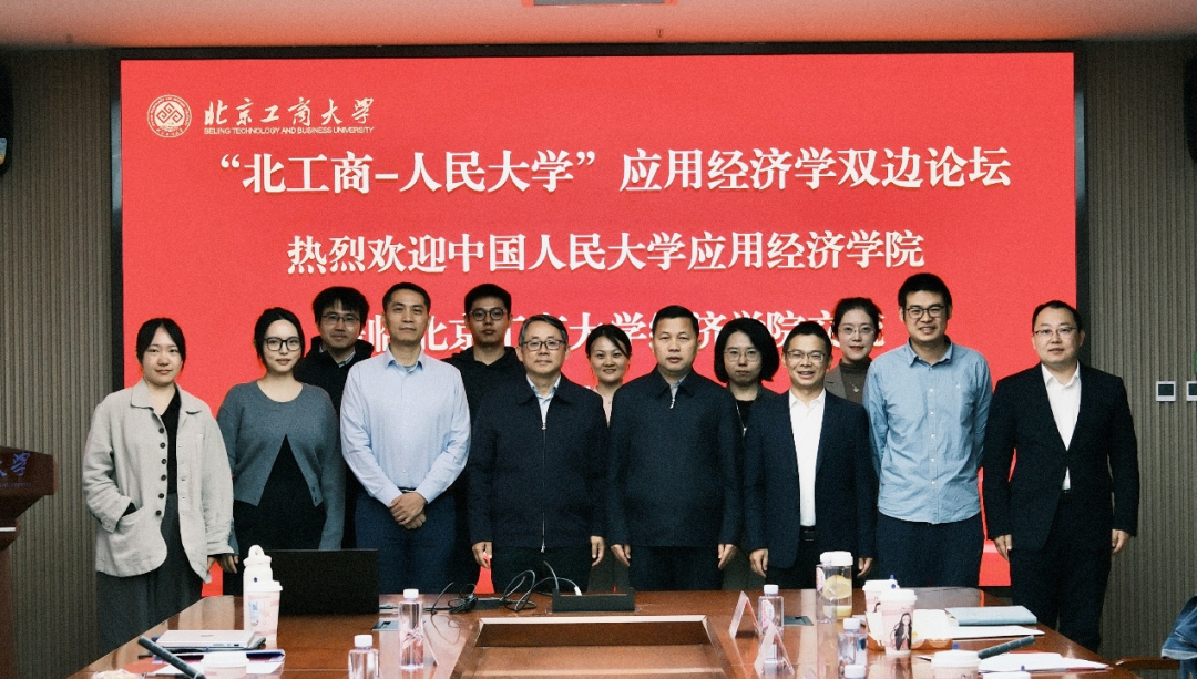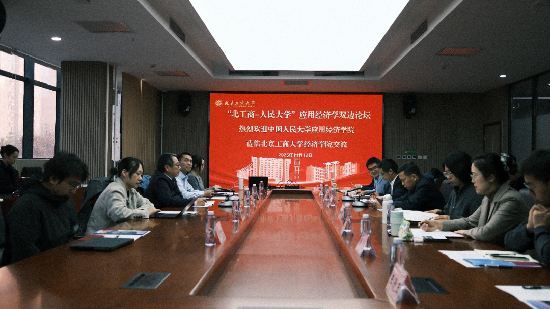 11月12日上午,“北工商-人民大学”应用经济学双边论坛在北京工商大学良乡主校区举办。北京工商大学党委常委、副董事长寇红江,太阳成集团tyc经理魏楚教授、副经理陈占明教授、助理教授栗雅欣、吕媛、孙津韬,北京工商大学经济公司执行经理詹新宇教授、副经理许敬轩教授,人文社科处副处长岳鹏鹏副教授,经济公司金融系王爱萍副教授,经济系韩璇老师、张凡老师,保险系张寓副教授,贸易经济系王漫玉老师等师生代表参加此次论坛交流活动。