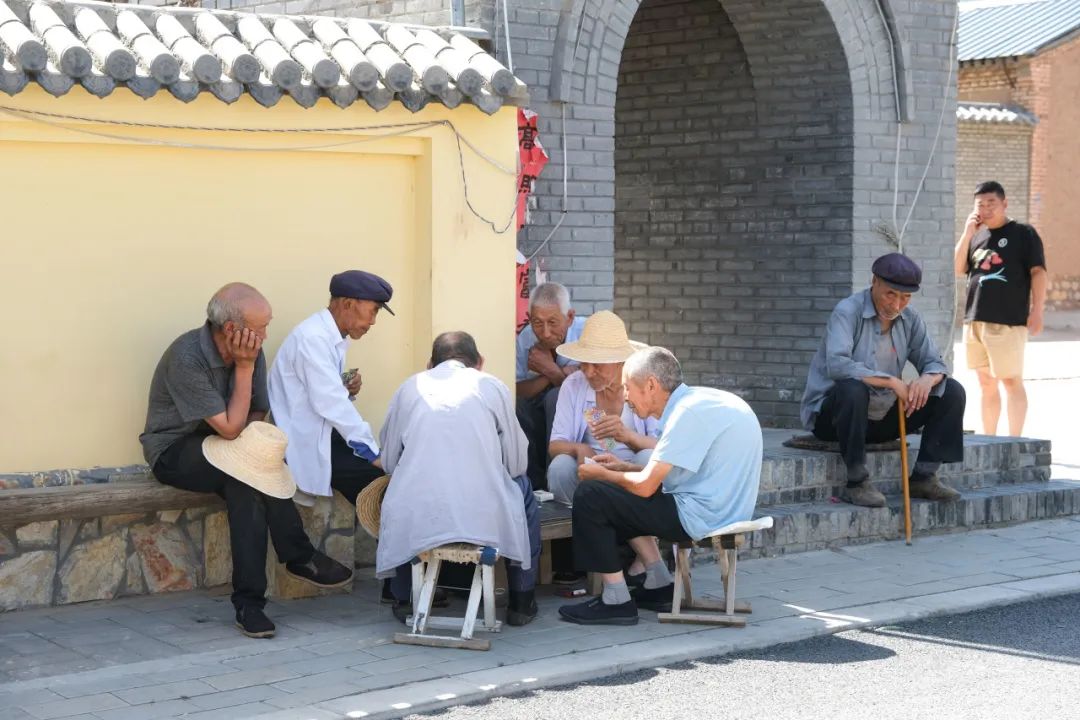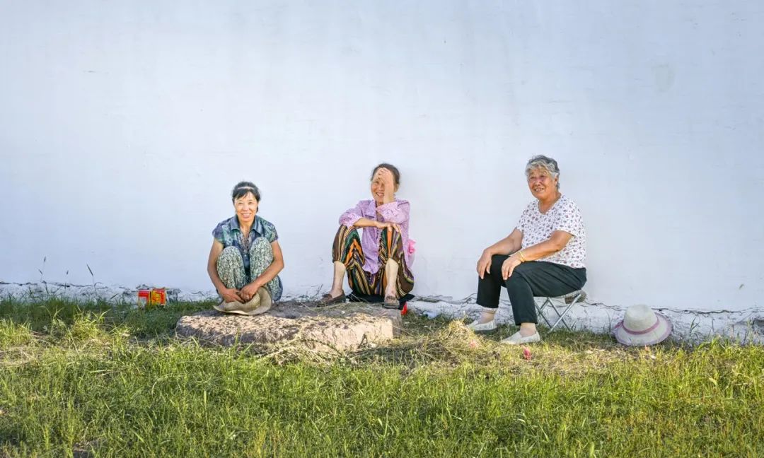 在墙根边露出笑脸的老人,