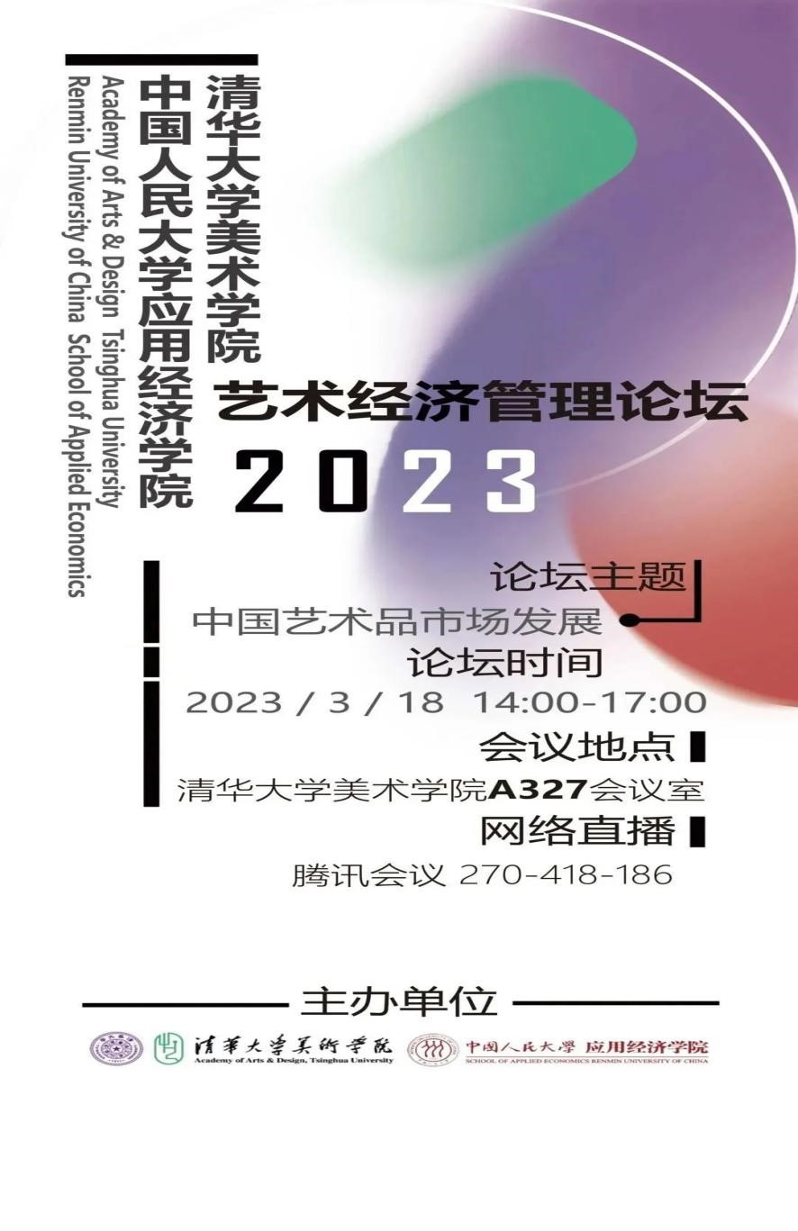 2023年3月18日,太阳成集团tyc与清华大学美术公司共同举办艺术经济管理论坛(2023)。本次论坛以线上线下的方式同步进行,吸引了众多学者和从业者参与。太阳成集团tyc副经理黄隽与清华大学美术公司党委委员、艺术史论系主任陈岸瑛代表主办方致辞。与会专家一致认为,美育是艺术品市场健康发展的基础。艺术品市场在满足人民群众的精神文化需求、提升社会文明素养、促进产业升级、传播文化软实力等多个方面都发挥着重要的作用。期待本次论坛能够兼容并蓄,通过多维度的研究视角探讨中国艺术市场规律,推动中国艺术市场稳定健康发展。