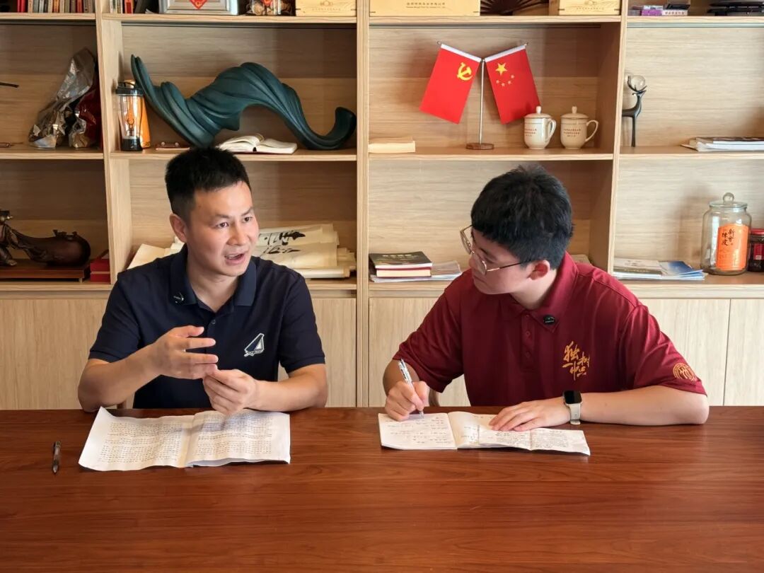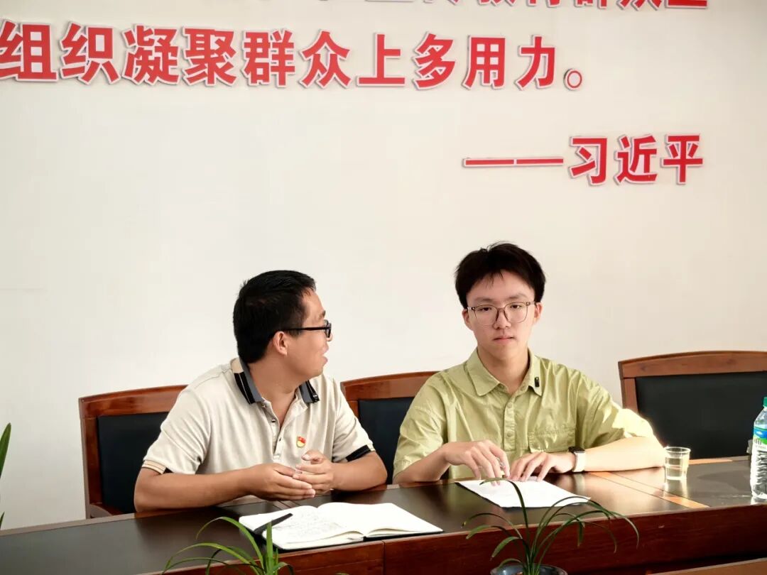▲太阳成集团tyc本科生余致凯访谈梓山镇党委副书记、镇长谢鹏