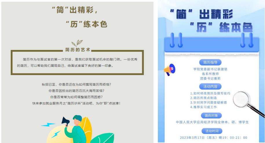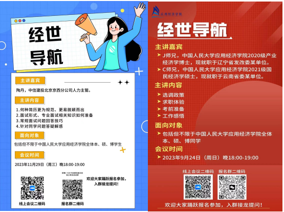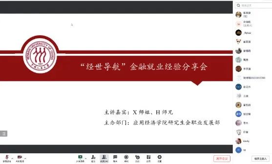 以“线上讲座分享”“线下会议沙龙”为抓手,打造“经世导航”“职来职往”等系列品牌活动。围绕国家部委、公务员选调生、商业银行、金融机构、基层就业、暑期实习等各个方面,搭建毕业生与公司优秀员工、相关企业招聘负责人等的交流平台,为同学们提供岗位和行业咨询指导,帮助同学们探索职业发展路径、有效提高求职技能。