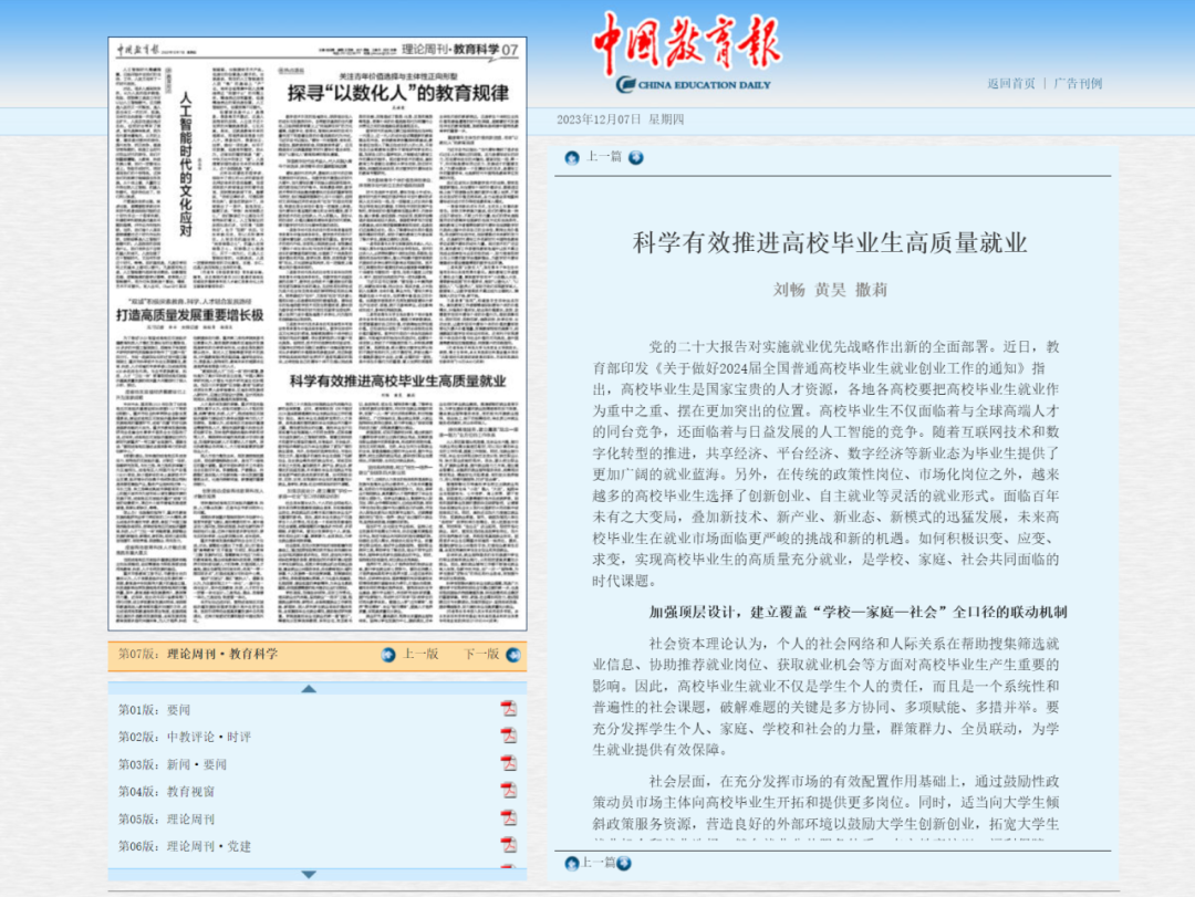 公司资深教授、系所主任、党支部书记、各类导师、班主任、辅导员全员参与,通过家长会、员工讲座等形式,切实发挥家庭和社会等不同主体力量,助力高质量充分就业。及时总结就业工作中的有效做法和成功经验,发表在《中国教育报》上。