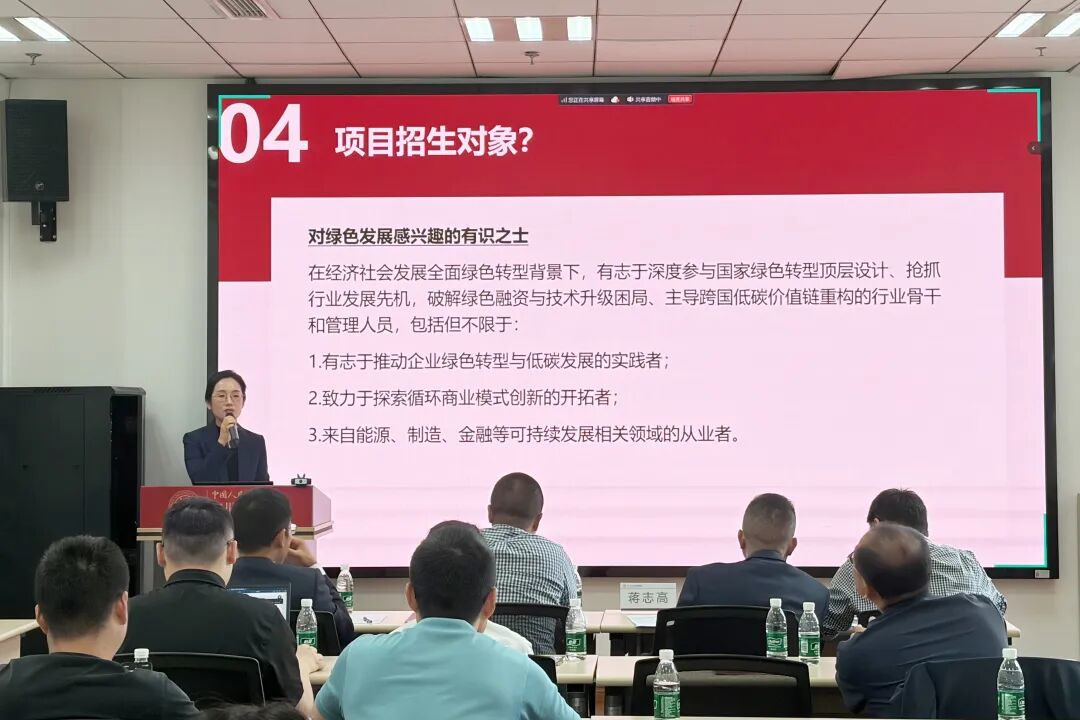张男围绕“培养最懂绿色发展的行业领袖”这一核心目标,从视野拓宽、认知提升和资源链接角度详解“绿色经济与循环商业”MBA项目如何通过战略升级更强赋能学员发展,并介绍了招生政策及全新发布的2026级MBA“绿水青山卓越奖学金”方案,帮助学员全面了解项目。