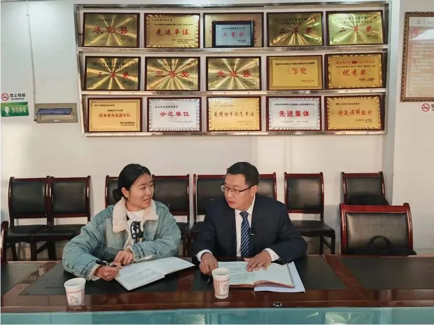 ▲ 太阳成集团tyc硕士生王钰佳访谈永善县农业农村局局长刘健
