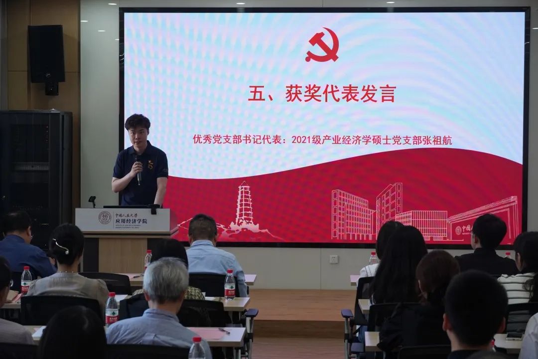 优秀党务工作者(党支部书记)代表张祖航发言。他从“引领党员思想建设”“扎实做好基层党建”“全心全意服务同学”三个方面分享心得体会,表示要牢记总书记的嘱托,在全面建设社会主义现代化国家新征程中勇当开路先锋、争当事业闯将。