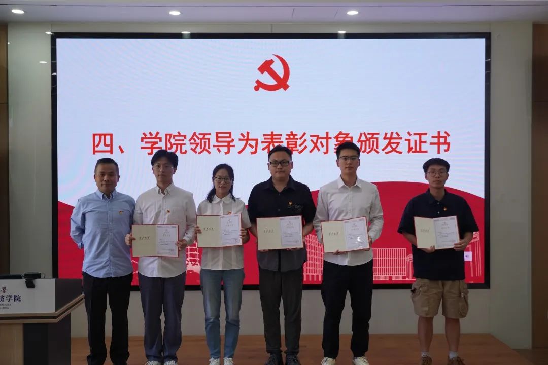 郑新业、裴建锁分别为优秀共产党员、优秀党务工作者(党支部书记)和先进基层党组织(党支部)获得者颁发荣誉证书。