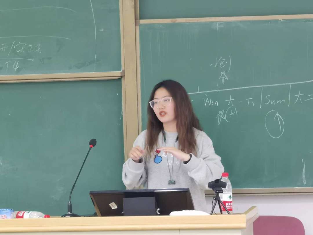 18级的柳源师姐热心地向新生们分享学习经验和心得。师姐提醒大家,在新的起跑线上,萌新们要保持平和的心态,不骄傲自满,也不妄自菲薄,自信地面对大学学习——提前预习,坚持上课认真听讲,踏实做好每一步,并特意提醒做到提前安排,心中有数,绝不拖沓。此外,师姐向萌新们分享了常见的误区雷区,老员工活丰富多彩,萌新们也要把握动态平衡,在学习之余多参加课外活动。最后,柳源师姐向新生们推荐了藏书馆、求是楼等自习场所以及朗读室、楼道等朗读场所。