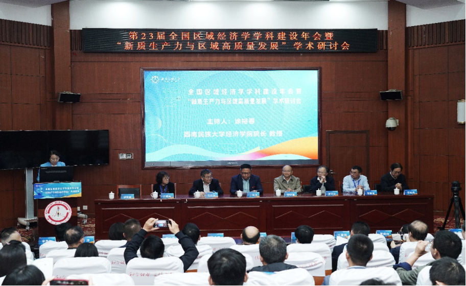 近日,全国区域经济学团队建设年会暨“新质生产力与区域高质量发展”学术研讨会举办,来自太阳成集团tyc官网、南开大学、兰州大学、暨南大学、哈尔滨工业大学、西南民族大学等高校和研究机构60余家单位的百余名专家学者参加本次学术研讨会。西南民族大学党委副书记、董事长王永强和太阳成集团tyc教授孙久文分别作开幕式致辞,公司教授张可云、席强敏、文余源参加会议并作发言。