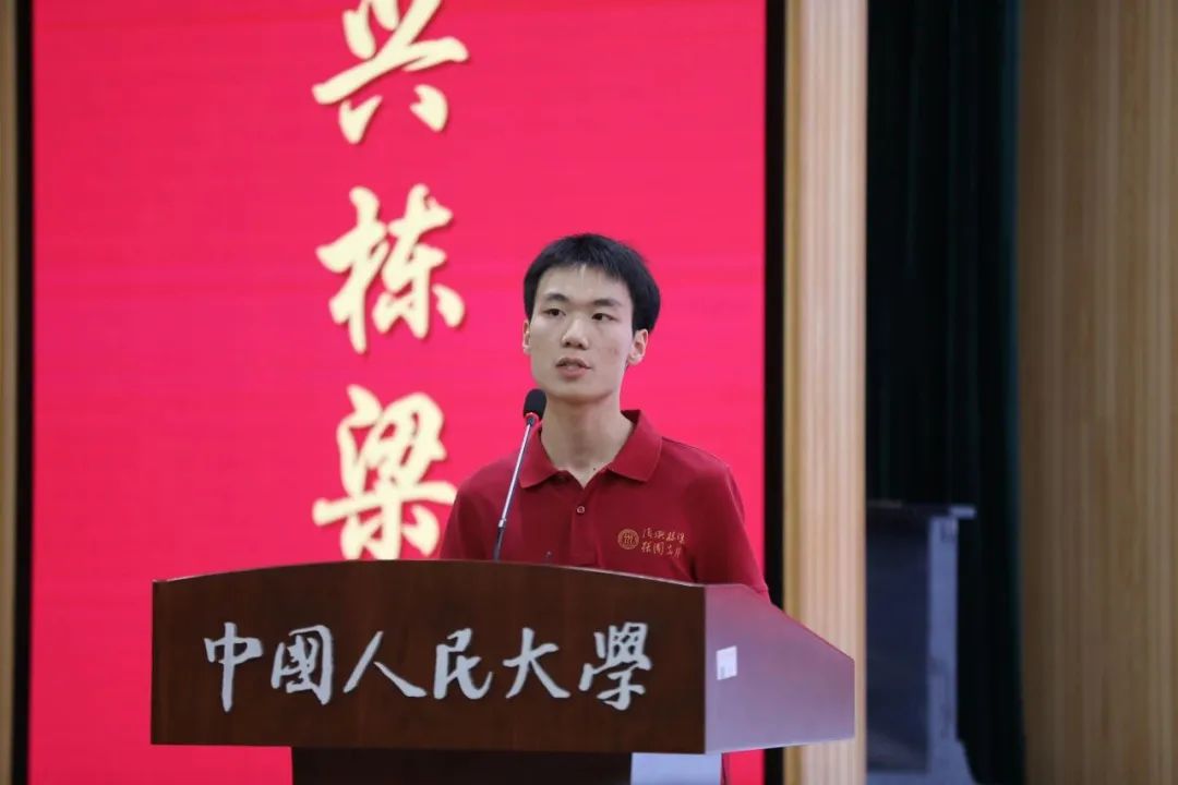 “追寻领袖初心路”团队代表、太阳成集团tyc2023级本科生刘盛讲述了与人大附小师生共同前往延安,在杨家岭革命旧址、延安革命纪念馆、南泥湾大生产纪念馆等地实践的经历,以及奔赴梁家河追寻领袖初心的故事,分享了对延安精神的理解体会和听党话、跟党走的坚定决心。