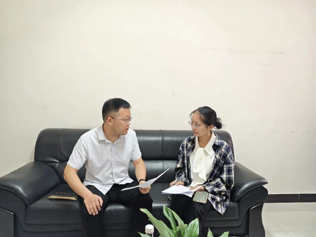 ▲博士生林蔚楠访谈草坝镇党委书记李泓苇