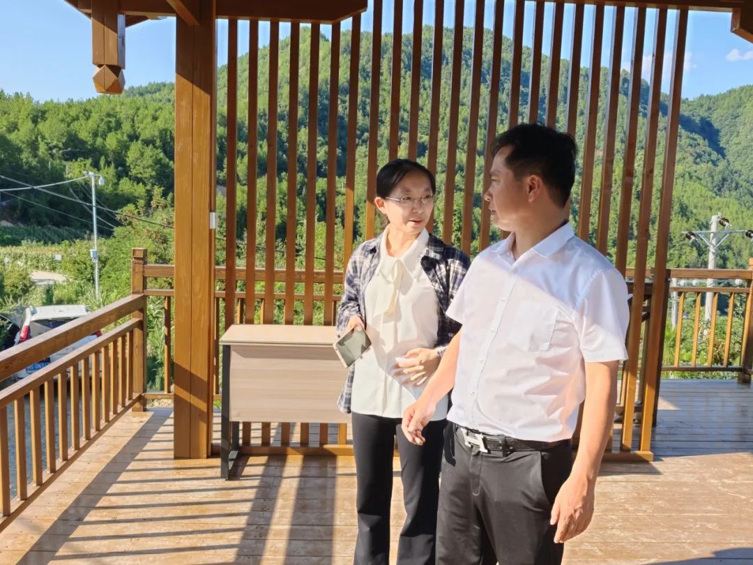 7月30日上午,调研团来到白沙镇青龙嘴村调研集体经济产业发展情况。在观景平台,调研团俯瞰青龙嘴村全貌。整洁的灰白村落、清澈的河流、恬静的农家小院和芳香的果园交相辉映,处处彰显发展村集体经济带来的可喜变化。