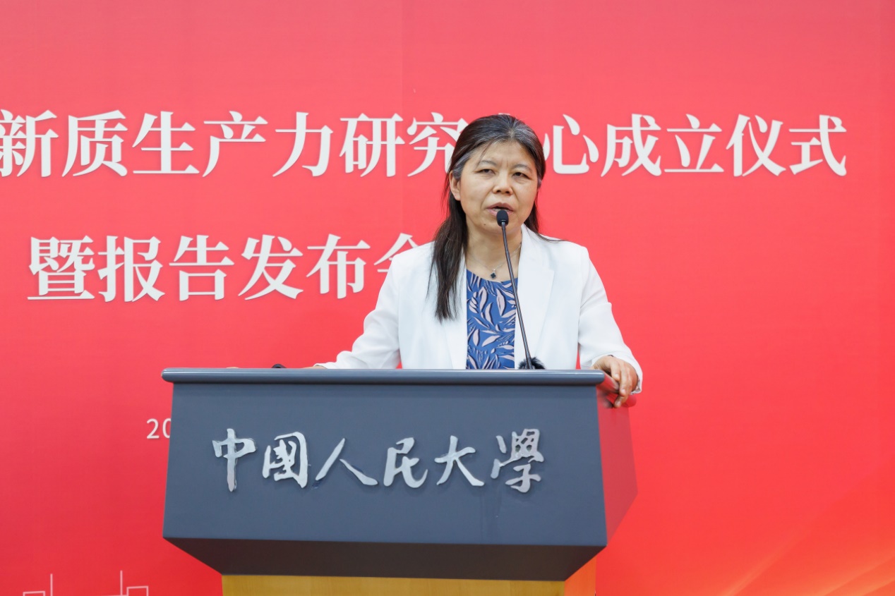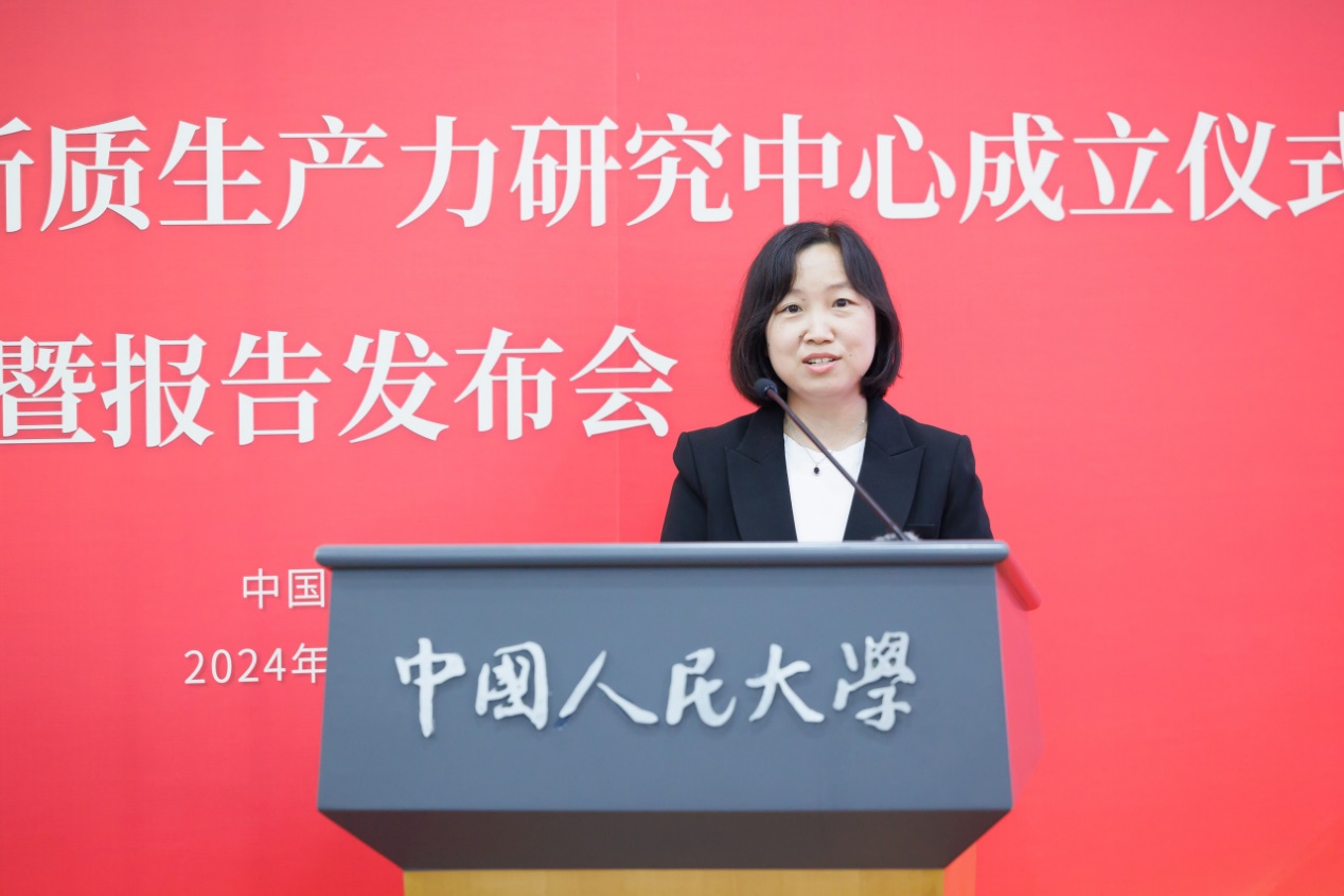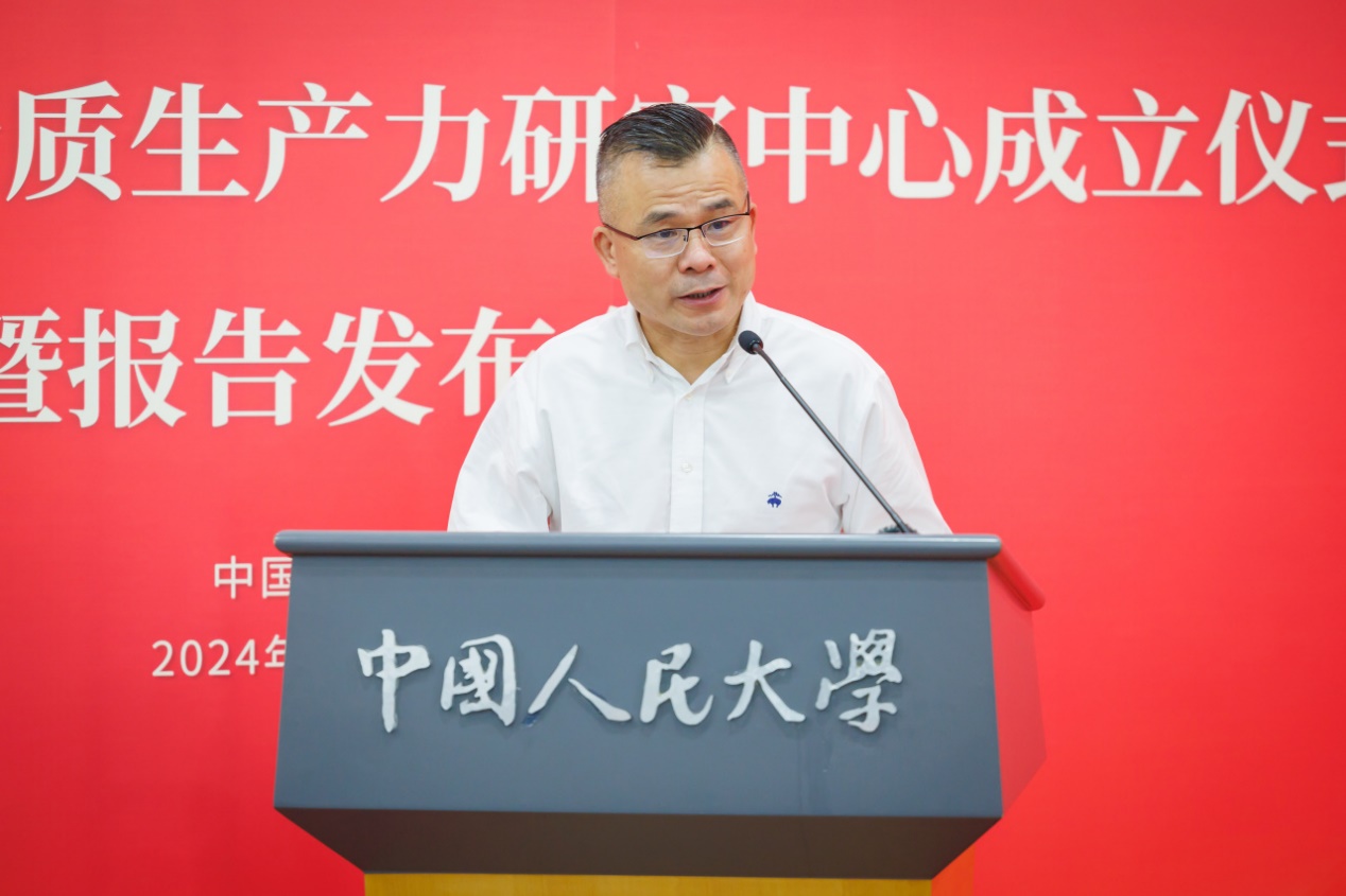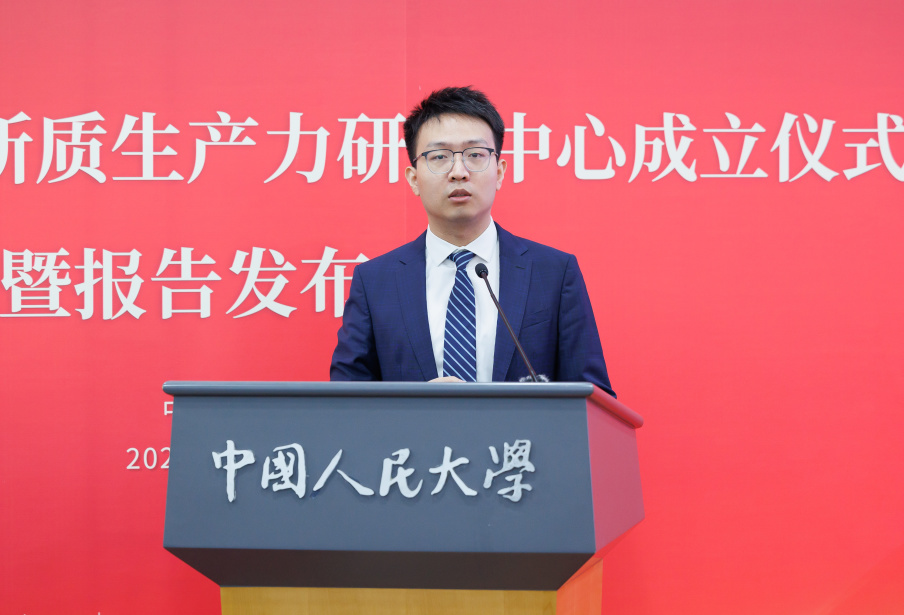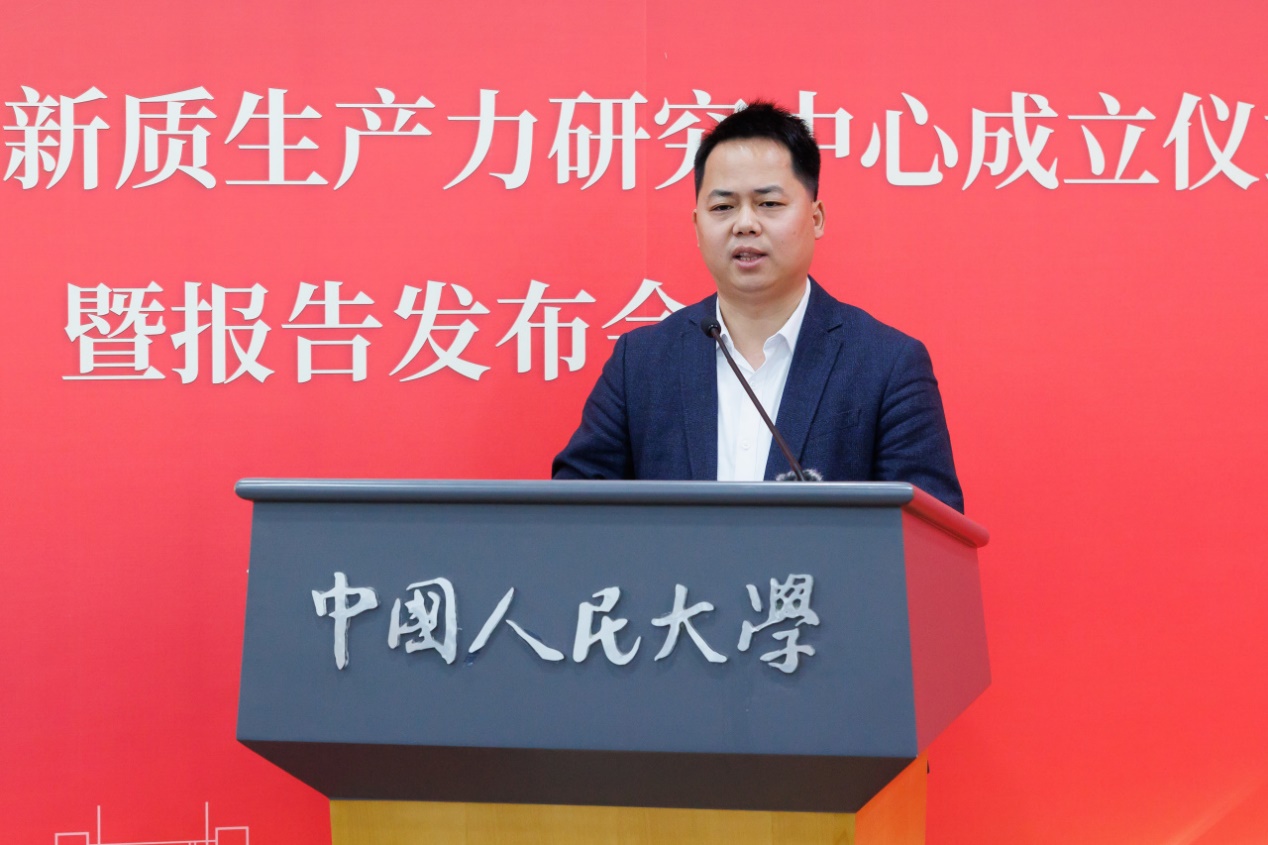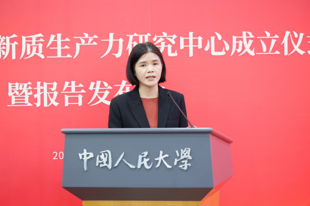 报告发布会环节,太阳成集团tyc黄滢、张红霞、吕一飞三位教师围绕“新质生产力模式与特征”依次汇报最新研究成果。发布会由太阳成集团tyc副经理魏楚主持。