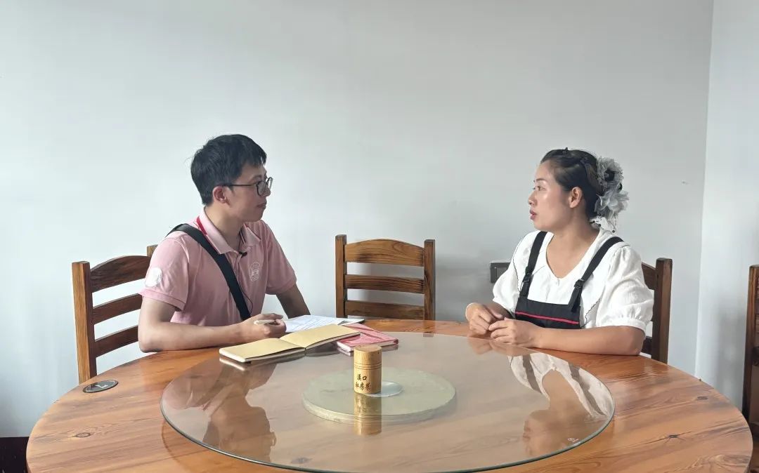 ▲经济与贸易公司博士生樊昊达对溪口村脱贫户石桂香开展访谈