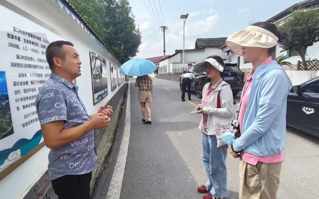 7月8日下午,辰沅新声队到达辰溪县柿溪乡溪口村开展调研。村支书首先为调研团队介绍溪口村脱贫攻坚情况。溪口村位于沅江河畔,四面环水,水域资源丰富,生态环境优美;历史悠久,文物古迹颇多,有距今6000多年的史前贝丘遗址。脱贫攻坚以来,溪口村利用区位优势、自然环境,着力打造生态产业宜居圣地。稳步推进基层社会治理,制订了村规民约,成立7个村民理事会(志愿服务队),做到矛盾不出村,信访不出乡,实现邻里守望相助,和睦相处。积极发展产业,全村共成立了6个农民专业合作社,涉及水产养殖、葡萄种植、精品果园、水稻种植及产品加工等,集体经济蓬勃发展。