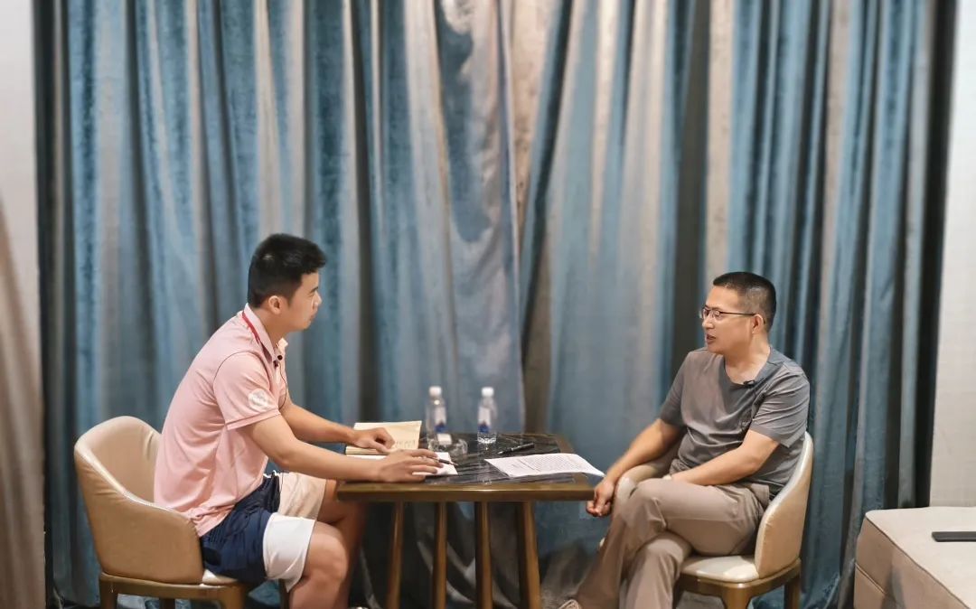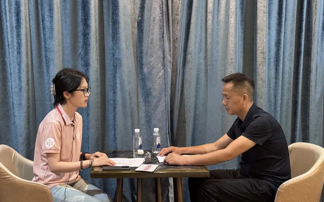 ▲经济与贸易公司硕士生赵怿玮访谈锦滨镇党委书记张军